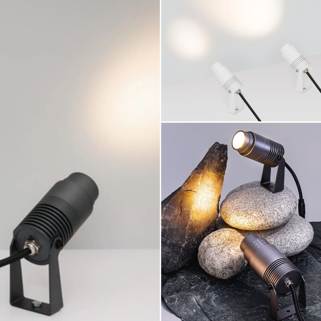 Где ставить: на газоне (в комплекте есть шип для грунта), на стене или потолке. Идеально для деревьев, баннеров, архитектурных ниш — везде, где нужно точно попасть лучом, а не «залить все вокруг».