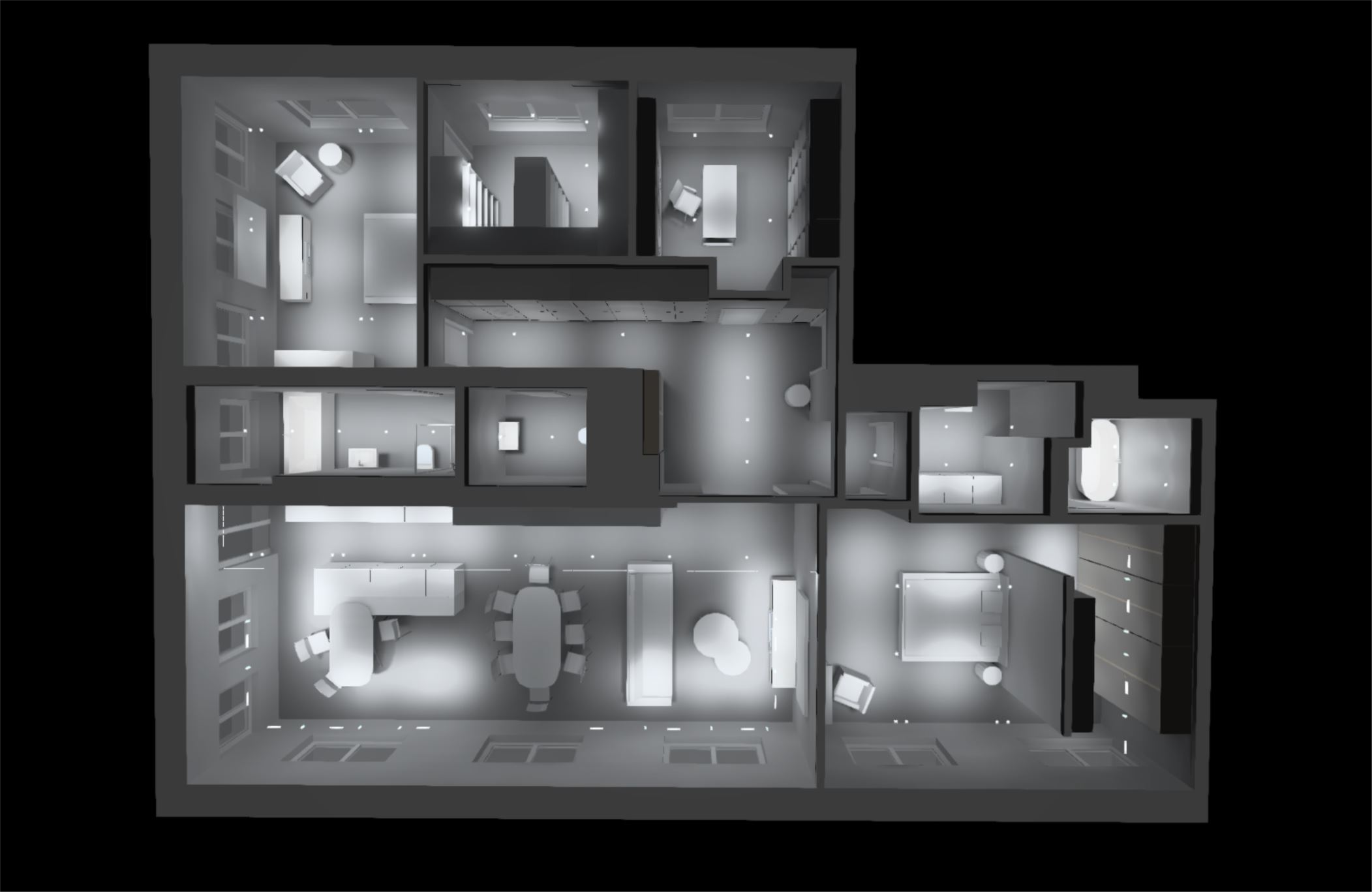Мы выполнили полный расчет в Dialux, проанализировали каждую зону квартиры и скорректировали расположение светильников. Наша цель — достичь баланса между функциональностью и атмосферой.