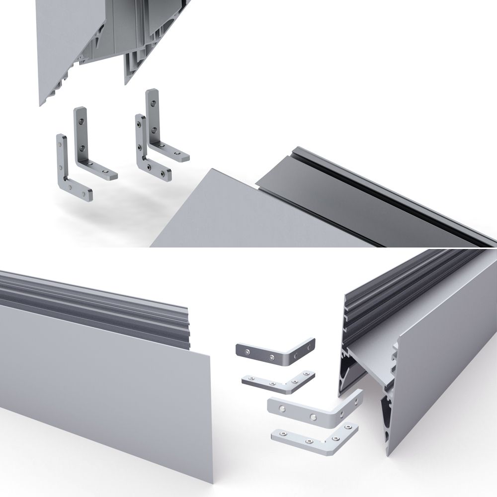 Угловой вертикальный коннектор для соединения двух отрезков профилей ALU-LINE-DUO, ALU-SWISS-20-2000 под углом 90°. Устанавливается в паз, фиксируется идущими в комплекте винтами. Применяются при изготовлении светильников сложной геометрии.