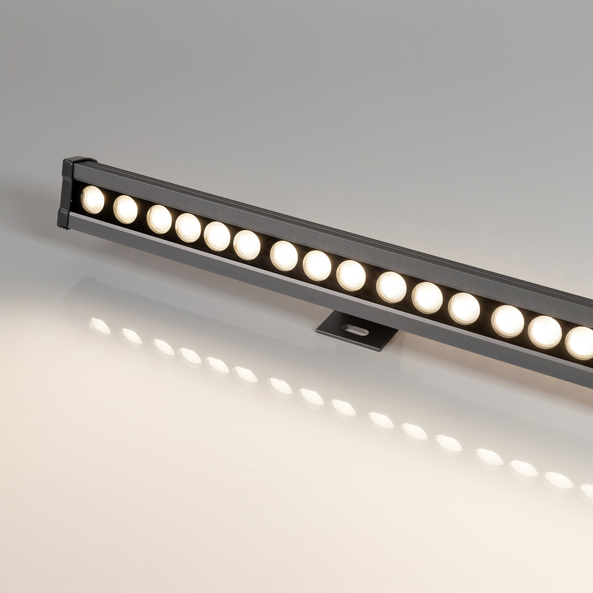 Линейный светодиодный прожектор LINE мощностью 36 Вт широко используется для декоративной подсветки зданий, а также архитектурных и скульптурных объектов: памятников, мостов, арок и др. Специальная оптика формирует распределение светового потока с узконаправленным углом излучения, что позволяет создать яркую и красивую иллюминацию фасадов зданий, а также сделать акценты на архитектурных формах. Применение в прожекторе SMD-светодиодов с высокой световой эффективностью 100 лм/Вт экономит значительную долю электроэнергии. Алюминиевый корпус с пылевлагозащитой на уровне IP65 дает возможность эксплуатировать прожектор как в помещениях, так и на открытом воздухе. Встроенный драйвер позволяет быстро и безопасно подключить прожектор напрямую к сети 230 В. Герметичные разъемы, входящие в комплект, упрощают подключение прожектора к кабелю питания и соединение прожекторов последовательно в группы, а два поворотных кронштейна обеспечивают надежный монтаж на поверхности.