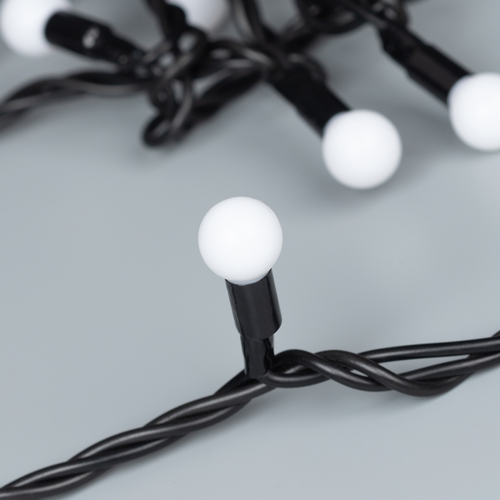 Универсальная светодиодная гирлянда "ШАРИКИ" серии Classic, предназначенная для декорирования и создания праздничного настроения как внутри помещений, так и снаружи (степень пылевлагозащиты IP65 позволяет размещать гирлянду на улице под навесом). Имея длину 20000 мм, она может использоваться для оформления средних и больших площадей. Универсальные соединительные разъемы позволяют наращивать длину до 200 м без использования дополнительных аксессуаров. Выпуклая молочно-белая линза размером 13 мм и эффект непрерывного свечения обеспечивают мягкое, равномерное освещение, выделяя украшаемые объекты. Тёплый белый свет помогает создать необходимую атмосферу для декоративного объекта. Провод изготовлен из ПВХ и окрашен в чёрный цвет. Аксессуары для подключения приобретаются отдельно.