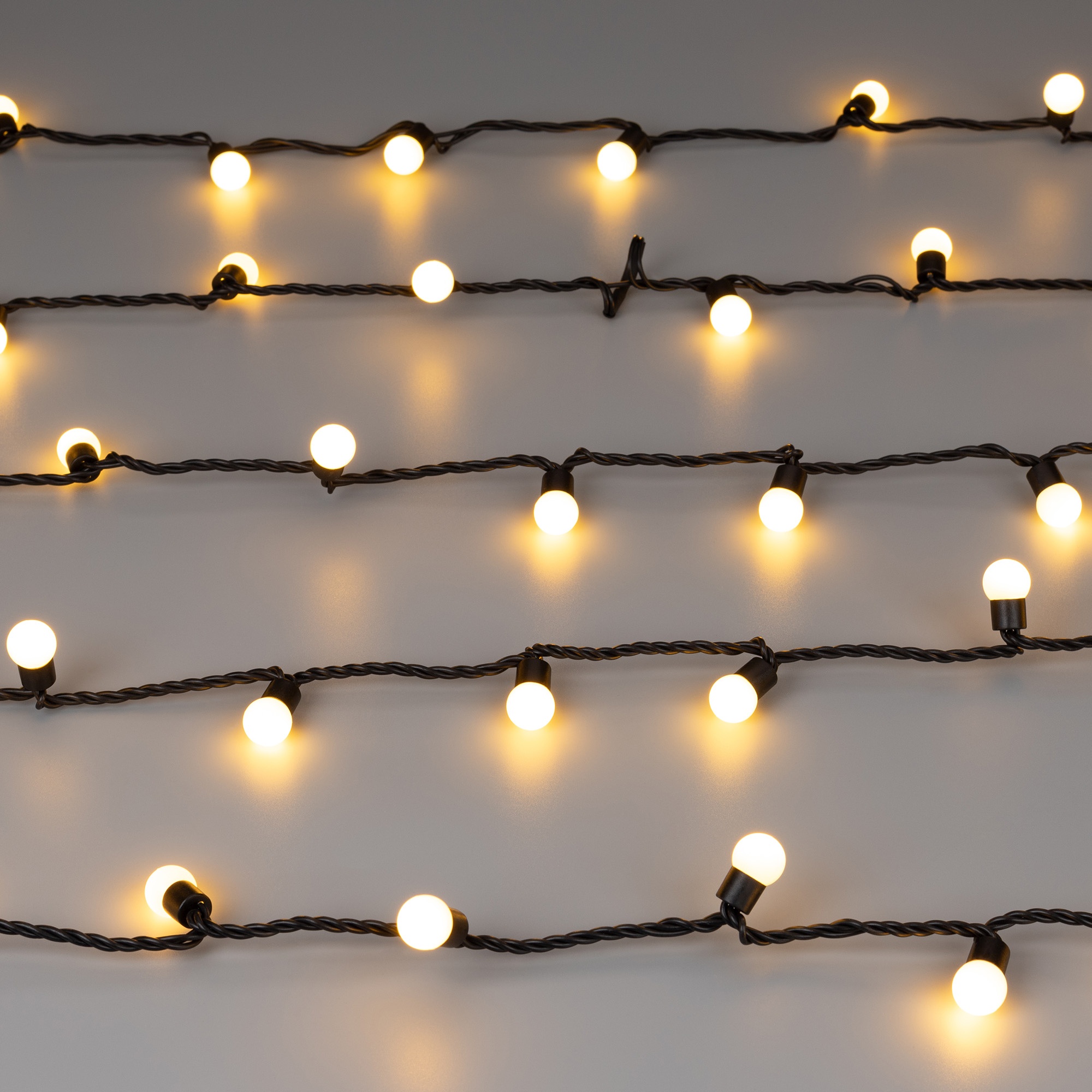 Универсальная светодиодная гирлянда "ШАРИКИ" серии Classic, предназначенная для декорирования и создания праздничного настроения как внутри помещений, так и снаружи (степень пылевлагозащиты IP65 позволяет размещать гирлянду на улице под навесом). Имея длину 10000 мм, она может использоваться для оформления средних и больших площадей. Универсальные соединительные разъемы позволяют наращивать длину до 200 м без использования дополнительных аксессуаров. Выпуклая молочно-белая линза размером 17.5 мм и эффект непрерывного свечения обеспечивают мягкое, равномерное освещение, выделяя украшаемые объекты. Тёплый белый свет помогает создать необходимую атмосферу для декоративного объекта. Провод изготовлен из ПВХ и окрашен в чёрный цвет. Аксессуары для подключения приобретаются отдельно.