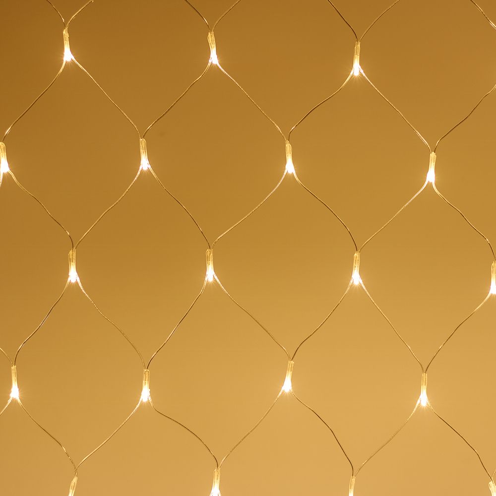 Светодиодная сеть Home. 1500x1500 (длина 1500 мм, высота 1500 мм). Цвет свечения ТЕПЛЫЙ БЕЛЫЙ (3000 К). 150 светодиодов размером 5 мм со статическим и 8 динамическими эффектами свечения с резким световым рисунком (прозрачная вогнутая линза). Провод прозрачный, ПВХ. Питание 230 В, Мощность 12 Вт, защита IP20, применение в помещении. Аксессуары для подключения и выбора режима свечения в комплекте.