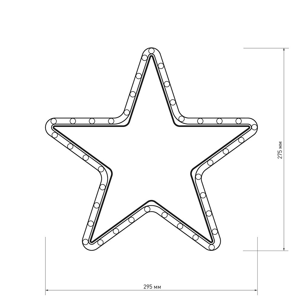 Светодиодная фигура ЗВЕЗДОЧКА отлично подходит для украшения и создания праздничной атмосферы как внутри помещений, так и снаружи (степень пылевлагозащиты IP65 позволяет размещать гирлянду на улице под навесом). Размер фигуры 295x275 мм. Тёплый белый свет и постоянное свечение помогают создать сказочную атмосферу в выбранной локации. Фигура укомплектована проводом питания для подключения к сети 230 В (без вилки питания).