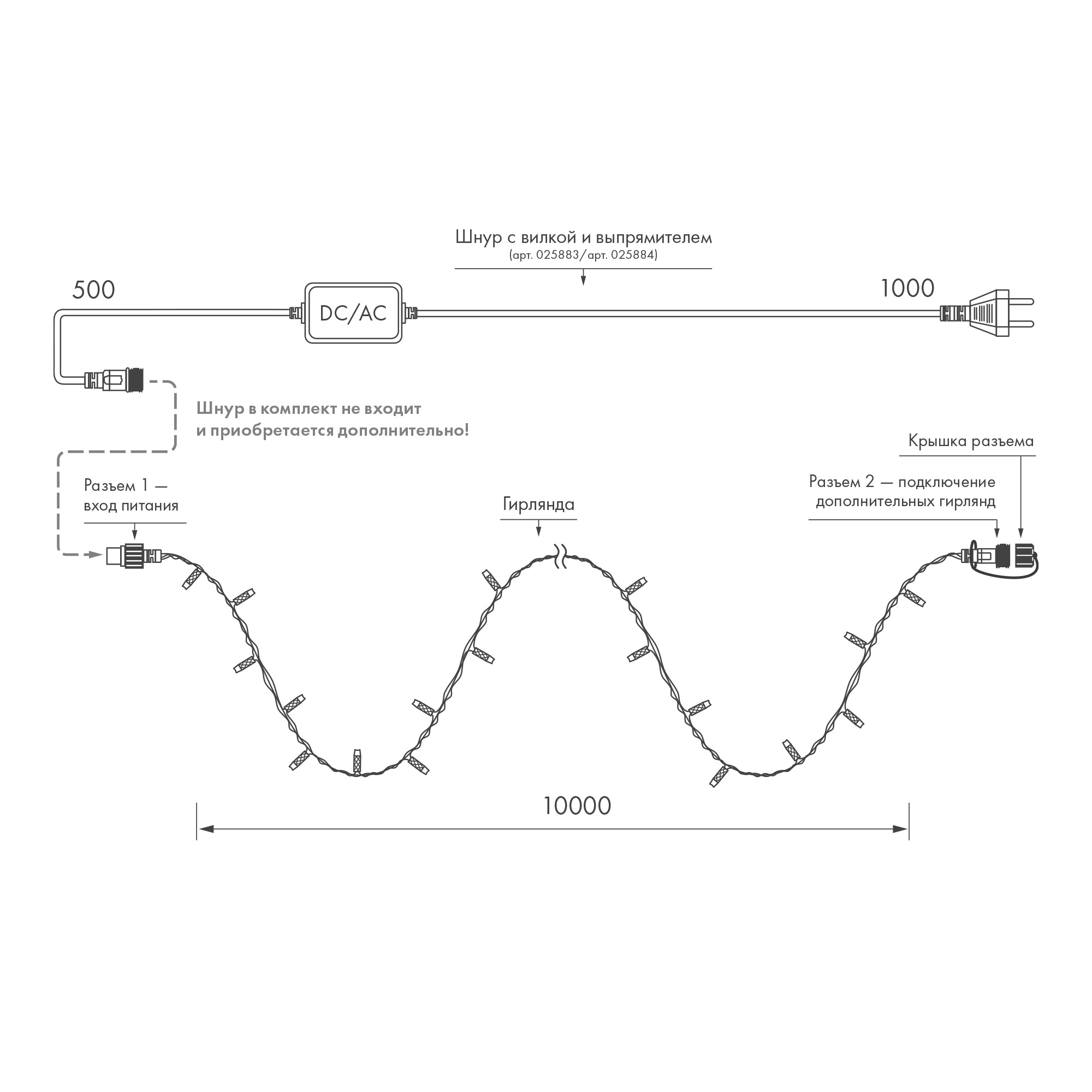 Характеристики - Светодиодная гирлянда ARD-STRING-CLASSIC-10000-CLEAR-100LED-STD Gold (230V, 7W) (Ardecoled, IP65)
