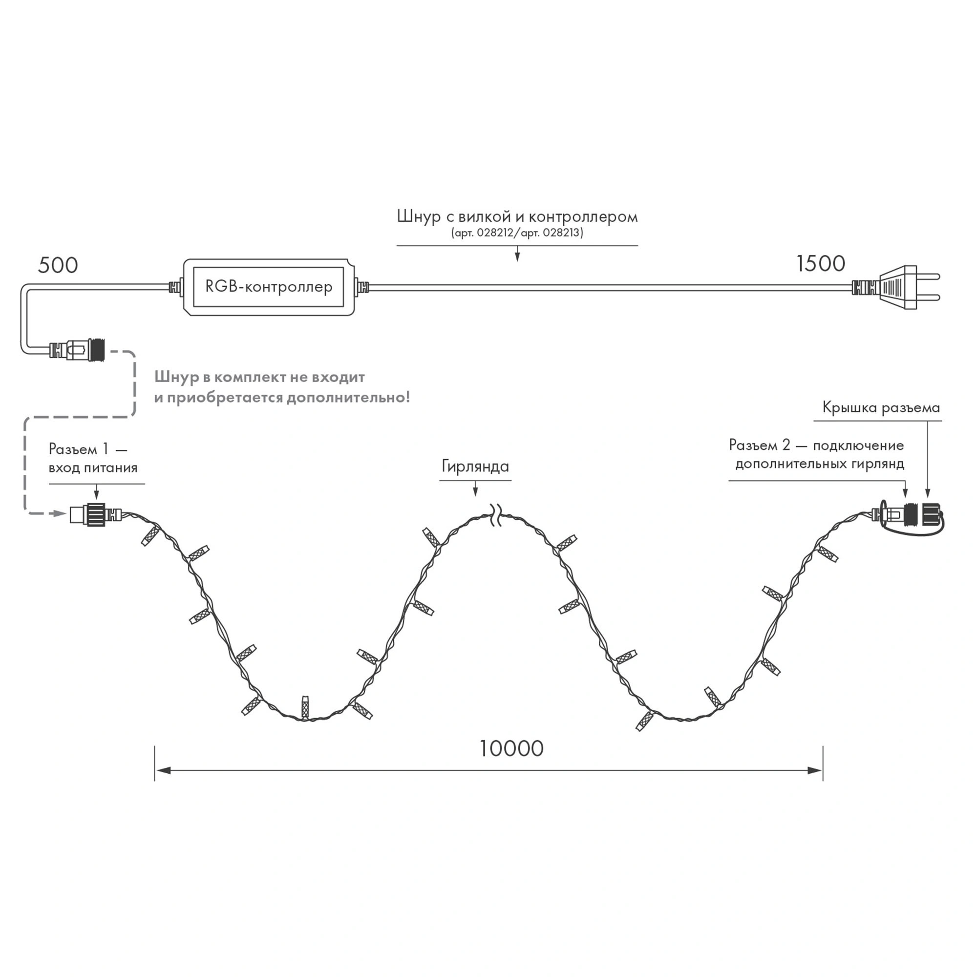 Характеристики - Светодиодная гирлянда ARD-STRING-CLASSIC-10000-CLEAR-100LED-SYNC RGB (230V, 6.5W) (Ardecoled, IP65)