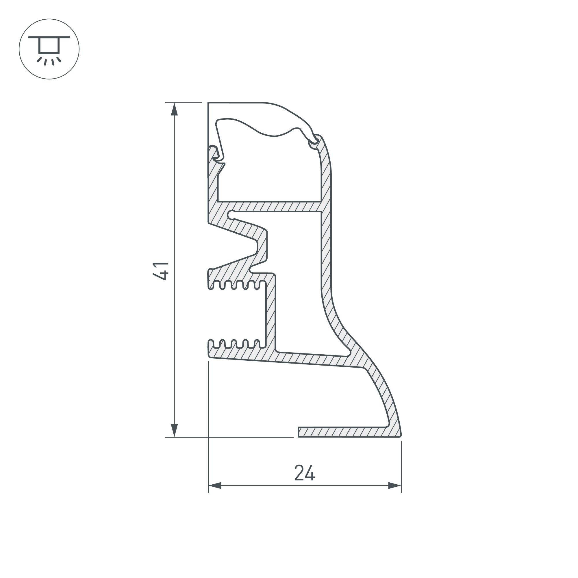 Накладной профиль-плинтус из анодированного алюминия для контурной подсветки помещения. Габаритные размеры этого профиля составляют 2000 мм в длину, 24 мм в ширину и 41 мм в высоту. Площадка для установки светодиодных лент позволяет использовать ленту шириной до 12 мм и мощностью до 27 Вт/м. Это обеспечивает гибкость в выборе светодиодных лент и создает потрясающие световые решения. Экран, заглушки и другие аксессуары не включены в комплект и приобретаются отдельно. Цена указана за 1 метр профиля. Простая установка без предварительной подготовки стен. Отличное решение для создания современных световых проектов.