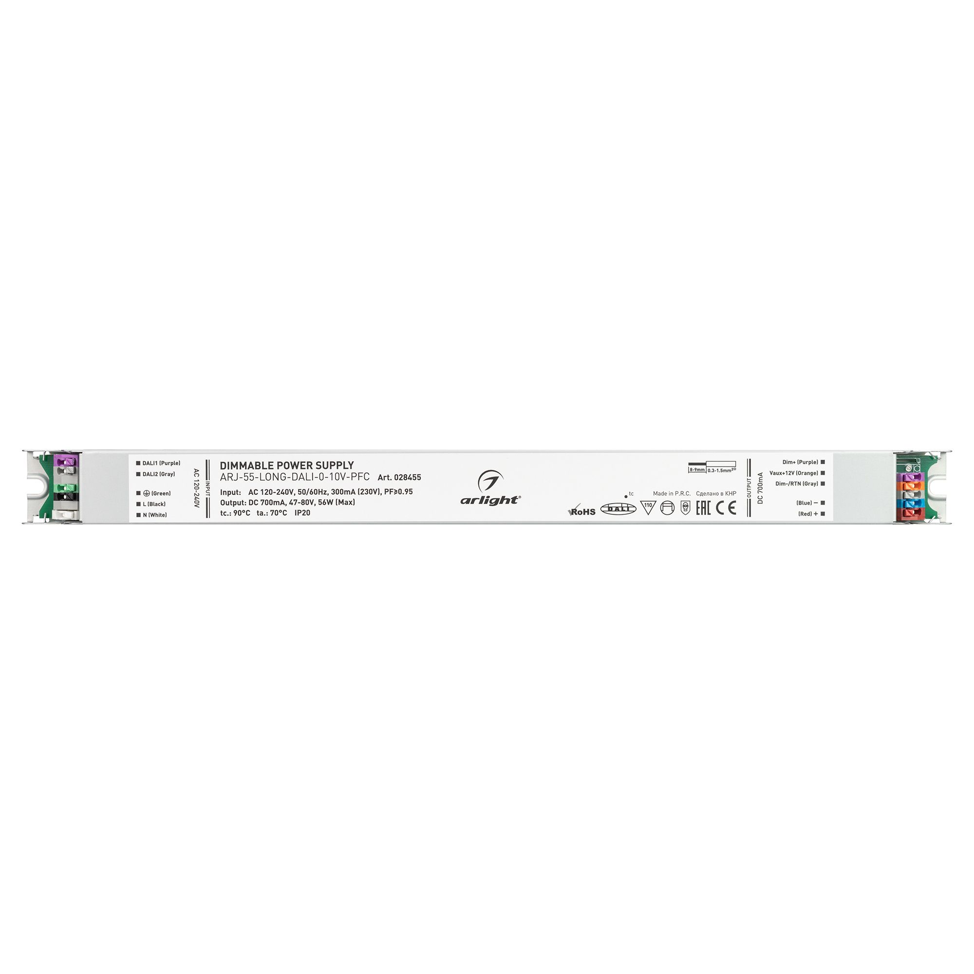 Характеристики - Блок питания ARJ-55-LONG-DALI-0-10V-PFC (56W, 700mA) (Arlight, IP20 Металл, 7 лет)