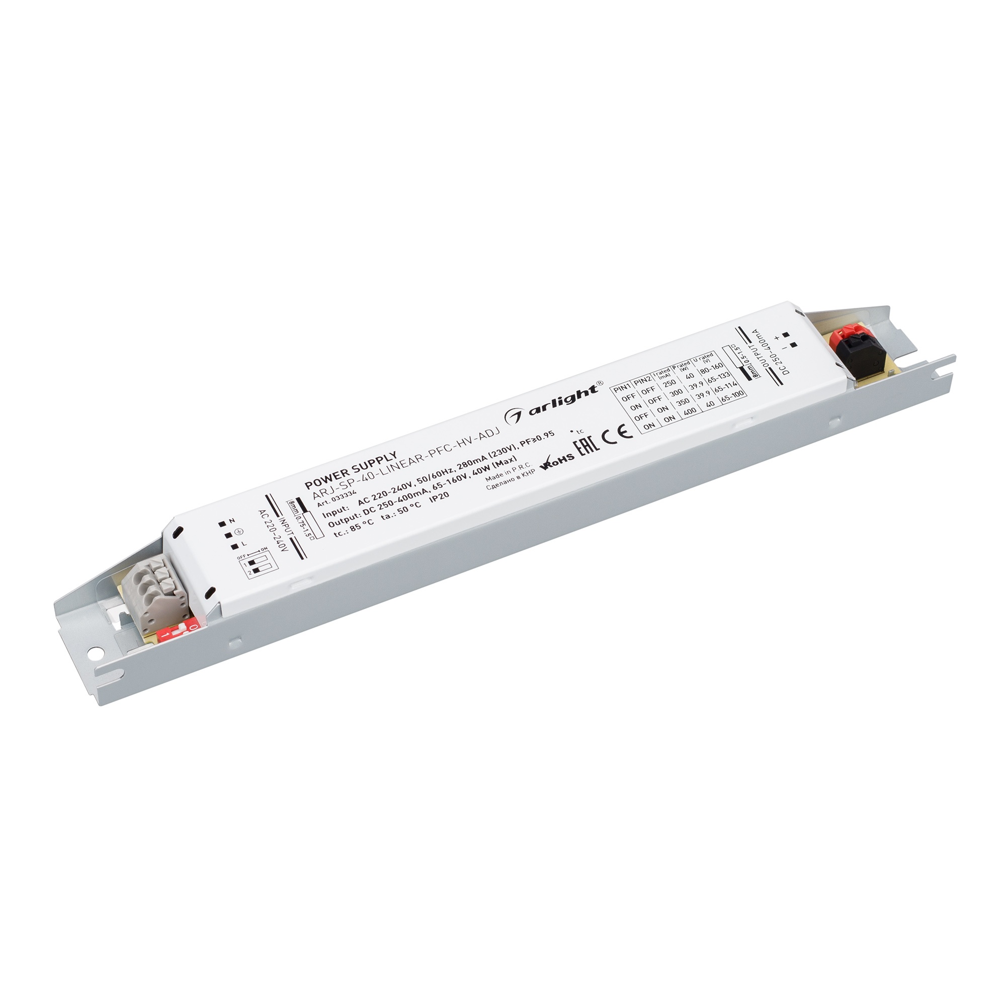 Характеристики - Блок питания ARJ-SP-40-LINEAR-PFC-HV-ADJ (40W, 250-400mA) (Arlight, IP20 Металл, 5 лет)
