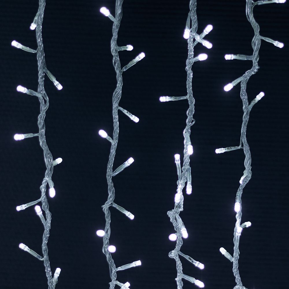 Светодиодная герметичная IP65 гирлянда "ВОДОПАД", БЕЛАЯ холодная. Длина 3000мм, высота 2000мм, 3200шт светодиодов. Питание 230В, мощность --Вт.Прозрачный провод с евровилкой.