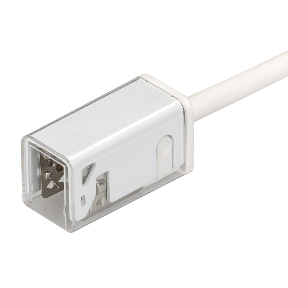 Герметичный коннектор питания для гибкого неона MOONLIGHT, сечение 17х12мм, цвет белый. Горизонтальный вывод провода. Подключение питания без пайки, IP54, длина провода питания 500мм.