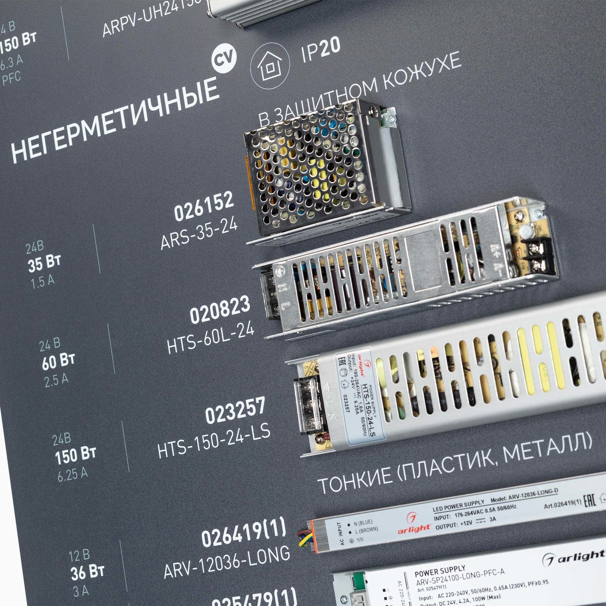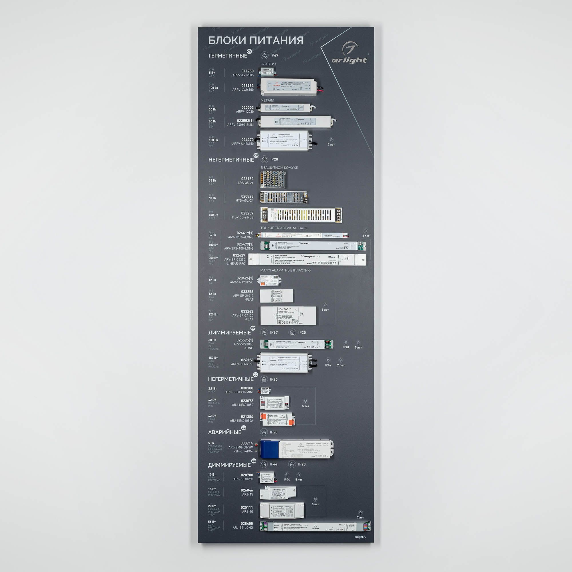 Характеристики - Стенд Блоки Питания ARP-E14-1760x600mm (DB 3мм, пленка) (Arlight, -)