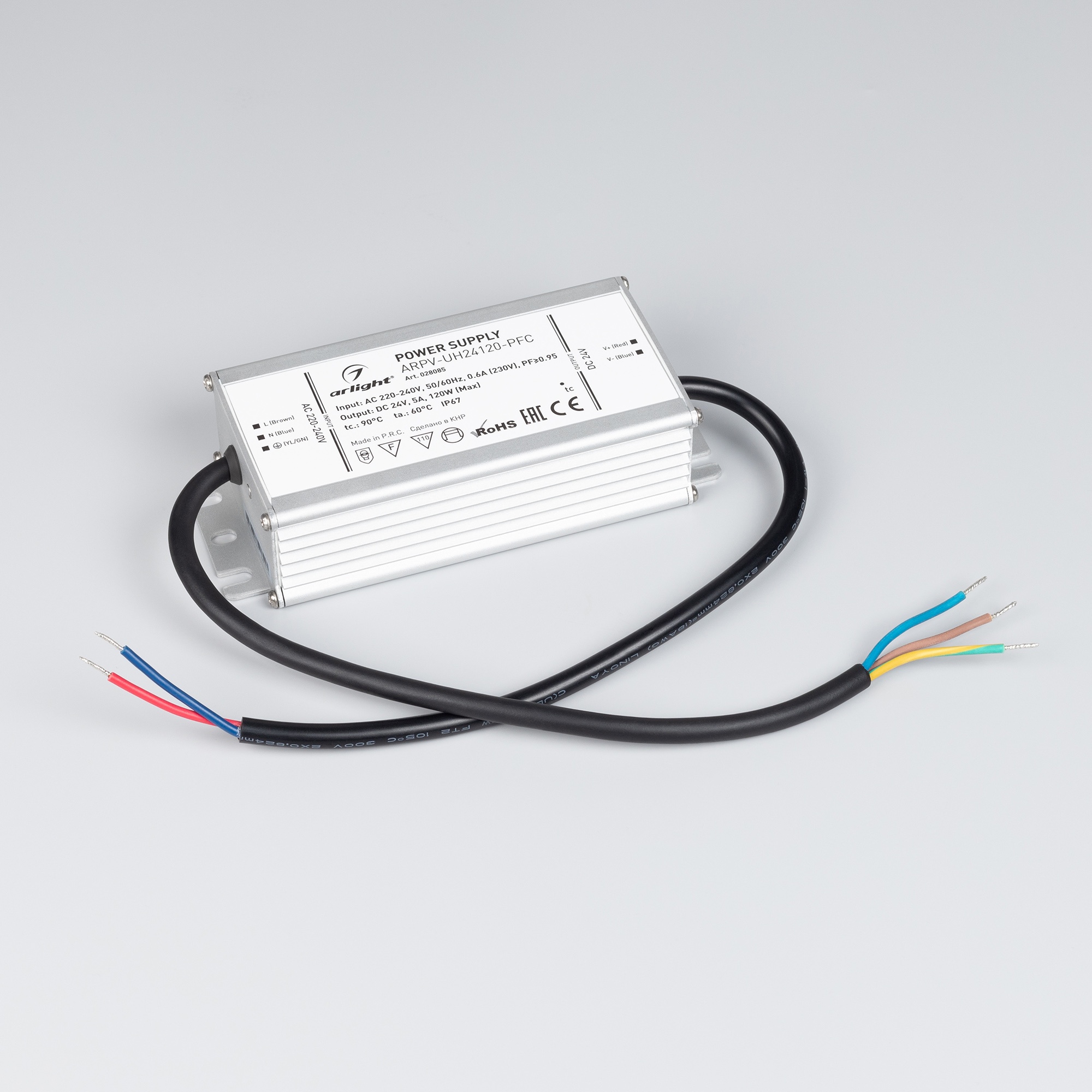 Характеристики - Блок питания ARPV-UH24120-PFC (24V, 5.0A, 120W) (Arlight, IP67 Металл, 7 лет)