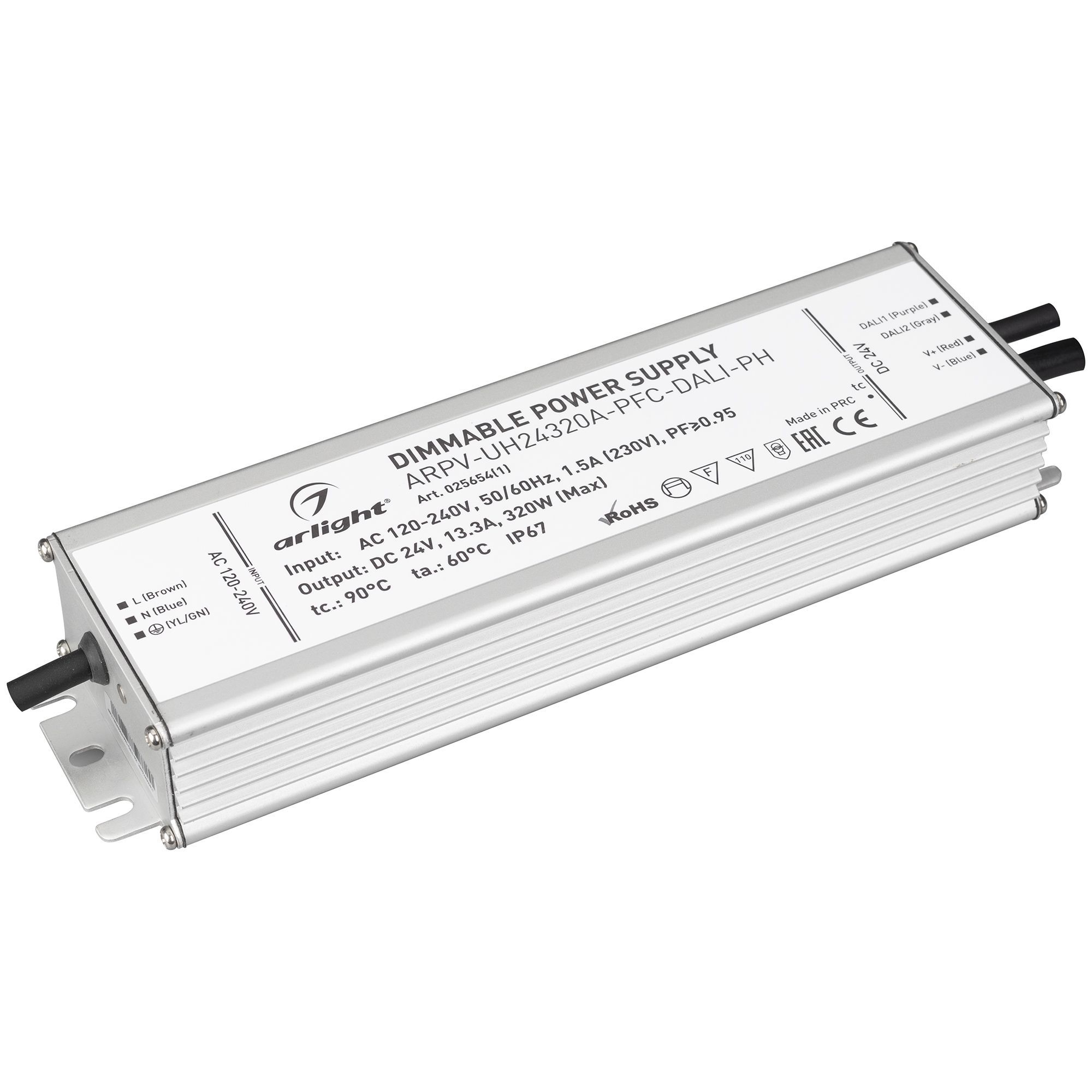 Характеристики - Блок питания ARPV-UH24320A-PFC-DALI-PH (24V, 13.3A, 320W) (Arlight, IP67 Металл, 7 лет)
