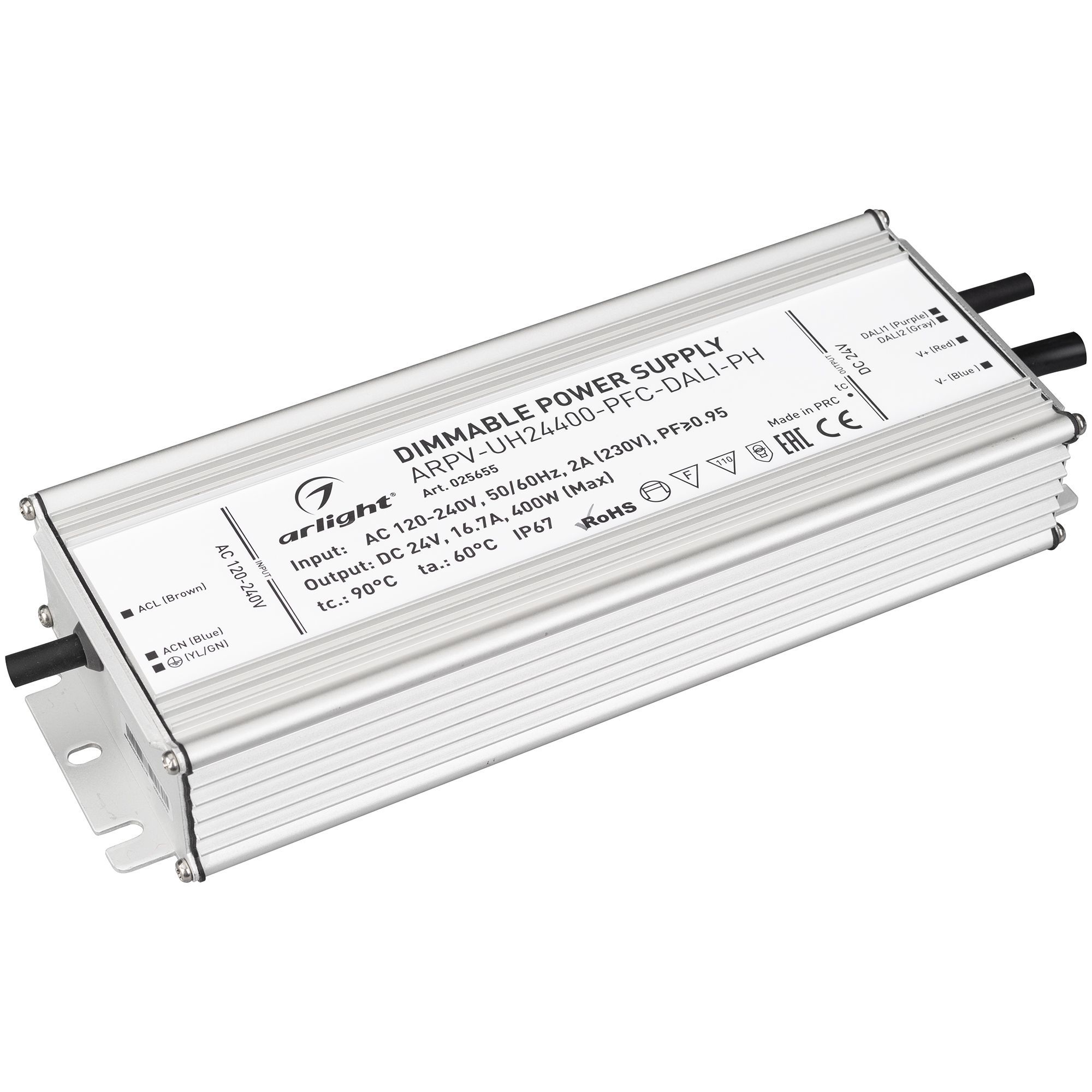 Характеристики - Блок питания ARPV-UH24400-PFC-DALI-PH (24V, 16.7A, 400W) (Arlight, IP67 Металл, 7 лет)