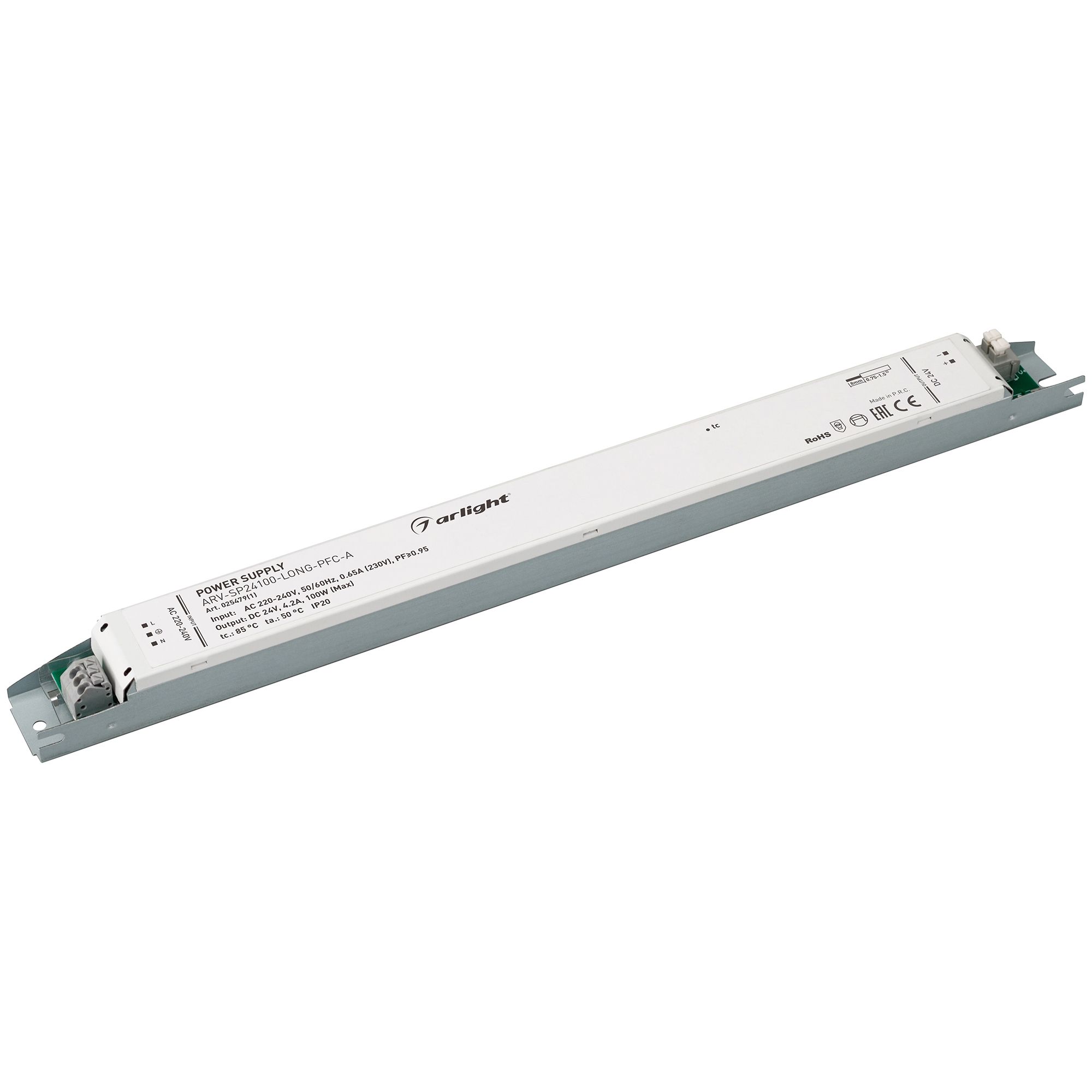 Характеристики - Блок питания ARV-SP24100-LONG-PFC-A (24V, 4.2A, 100W) (Arlight, IP20 Металл, 5 лет)