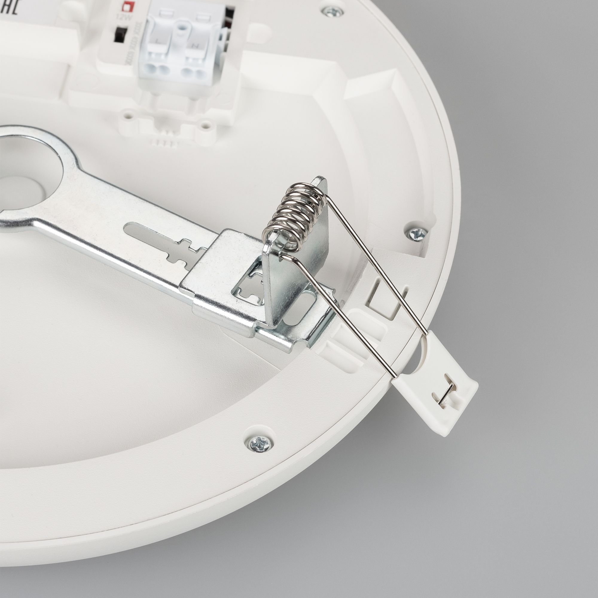 Многофункциональный накладной/встраиваемый светильник CL-FIOKK-R220-18W Day4000-MIX (WH, 120 deg, 230V) с изменяемой мощностью и цветовой температурой. Мощность 12–18 Вт, цветовая температура 3000/4000/6000 K. Светильник с индексом цветопередачи CRI>80 и широким углом излучения 120° предназначен для освещения мест общего пользования: вестибюлей, лестничных площадок, лифтовых холлов и прочих коммунальных и бытовых помещений. Простая и быстрая установка на потолок при помощи монтажной планки или в нишу с помощью пружин. Встроенный драйвер для быстрого подключения к сети 230 В. Белый круглый корпус из пластика, экран из поликарбоната и степень пылевлагозащиты IP44 обеспечивают надежную эксплуатацию светильника в помещениях общего пользования и сфере ЖКХ. Комплект крепежа для встраиваемого монтажа поставляется отдельно.