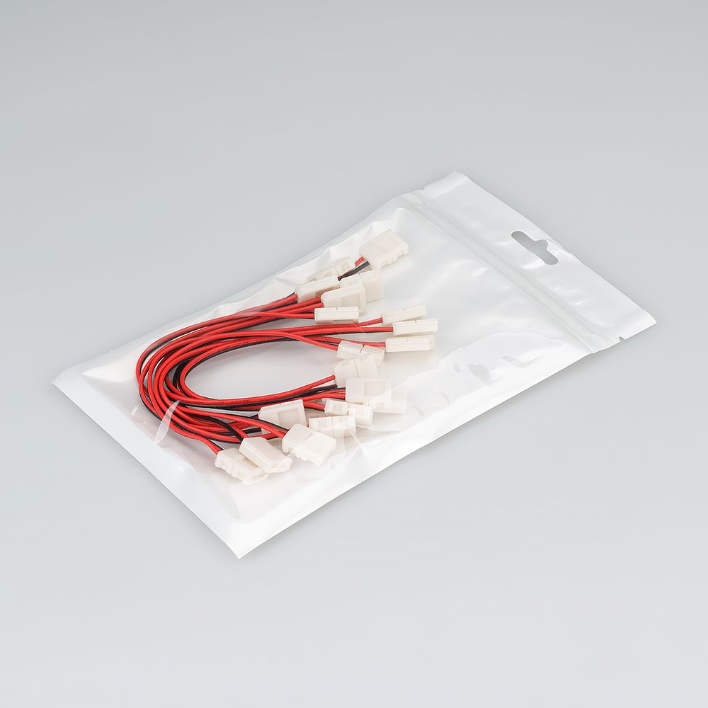 Двойной коннектор с проводом 15см для соединения 2-х отрезков открытых светодиодных одноцветных лент (3528, 2835) шириной 8мм. Материал - пластик. Максимальный допустимый ток 3А, напряжение до 50 В. Цена за 1шт.