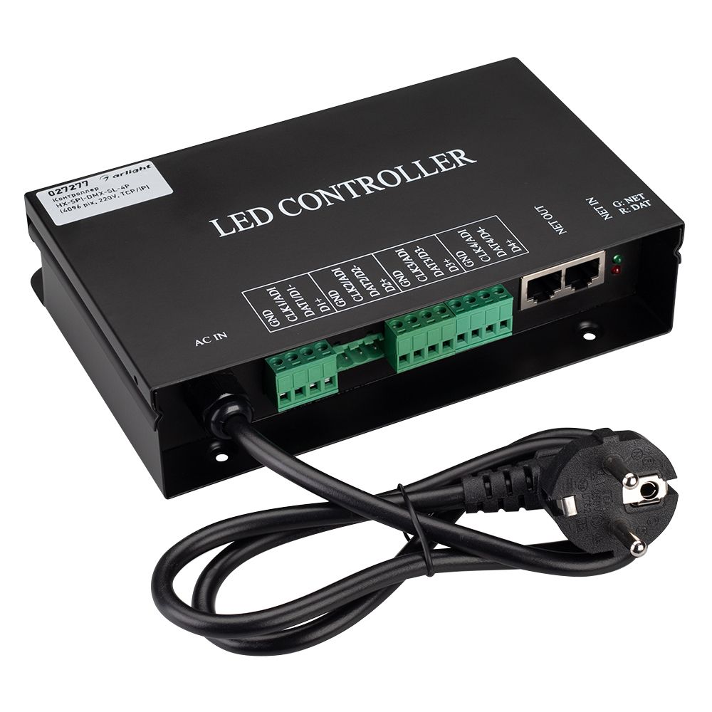 Характеристики - Контроллер HX-SPI-DMX-SL-4P (4096 pix, 220V, TCP/IP, add, ArtNet) (Arlight, IP20 Металл, 2 года)