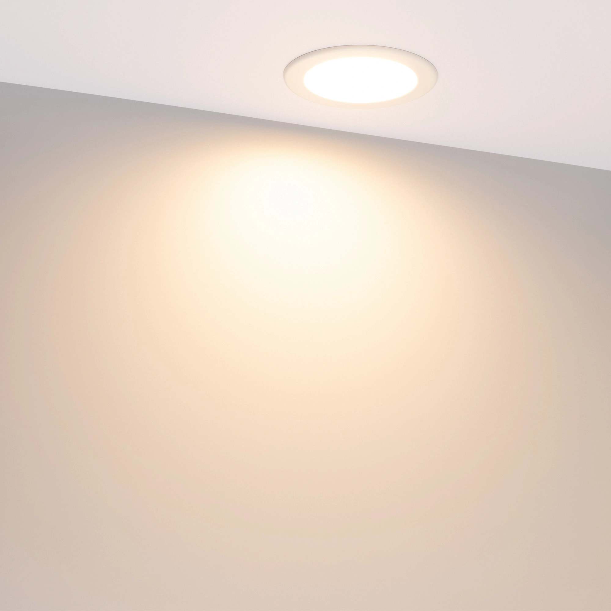 Встраиваемый круглый светильник предназначен для освещения в жилых, коммерческих и общественных помещениях. Индекс цветопередачи CRI>80 обеспечивает качественное освещение с точной передачей цветов. Алюминиевый корпус, окрашенный в белый цвет, будет гармонично смотреться в любом интерьере. Особая конфигурация корпуса позволяет эффективно отводить тепло и продлевает срок службы светодиодов. Матовый экран создает равномерное освещение без видимости точек светодиодов. Светильник с широким углом излучения 90 градусов подойдет для общего освещения помещений. Легко устанавливается в натяжные или гипсокартонные потолки с помощью пружин в монтажное отверстие. В комплекте поставляется драйвер, что позволяет безопасно и быстро подключать светильник напрямую к сети переменного тока 230 В. Корпус с защитой от пыли на уровне IP 40 применим для помещений, в которых отсутствует контакт с водой или другими жидкостями. Имеется возможность диммирования при замене штатного драйвера.