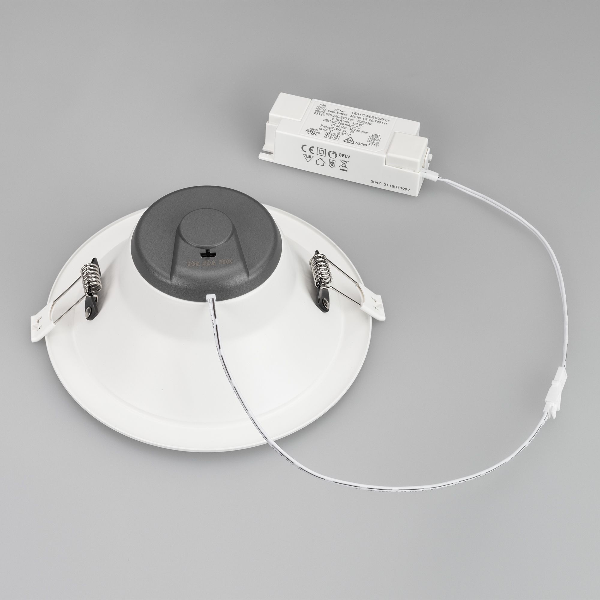 Встраиваемый светильник IM-STORM-R175-20W Day4000-MIX (WH, 80 deg, 230V) мощностью 20 Вт с изменяемой цветовой температурой 3000/4000/6000 К. Выбор цвета свечения происходит с помощью удобного переключателя на корпусе светильника. Индекс цветопередачи CRI>80 обеспечивает точное восприятие цветовых оттенков. Лаконичный алюминиевый корпус размером 174×72 мм будет гармонично смотреться в любом интерьере. Светильник с высокой светоотдачей, световым потоком 2000 лм и углом излучения 80° обеспечивает равномерное освещение без мерцания и видимости точек светодиодов. Светильник встраивается в установочное отверстие Ø145–155 мм с помощью удобных креплений. Светильник поставляется в комплекте с драйвером, что дает возможность быстро и безопасно подключать светильник напрямую к сети 230 В. Светильник предназначен для освещения торговых, офисных, жилых и других помещений, в которых отсутствует контакт с водой.