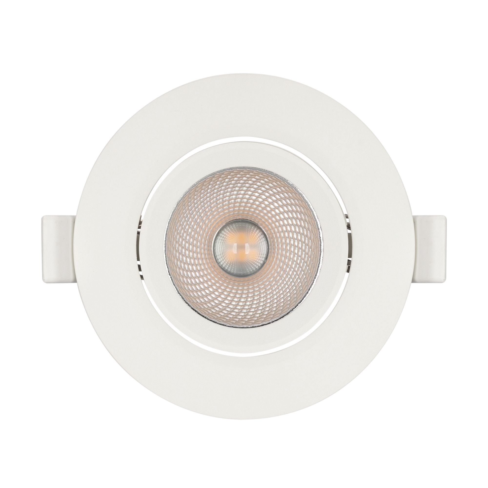 Встраиваемый поворотный светильник LTD-POLAR-TURN-R90-7W Day4000 (WH, 36 deg, 230V) мощностью 6.5 Вт, с дневным белым цветом свечения (4000 К) и низким коэффициентом дискомфорта UGR<19, благодаря чему достигается комфортный индекс освещенности. Светильник с цветопередачей CRI>80, световым потоком 550 лм и узким углом излучения 36° предназначен для направленного освещения торговых, офисных, жилых и других помещений. Световой модуль может отклоняться на 30°, позволяя мгновенно менять направление света. Светильник легко устанавливается с помощью пружин в монтажное отверстие Ø 68-80 мм. Благодаря встроенному драйверу светильник безопасно и быстро подключается напрямую к сети переменного тока 230 В.