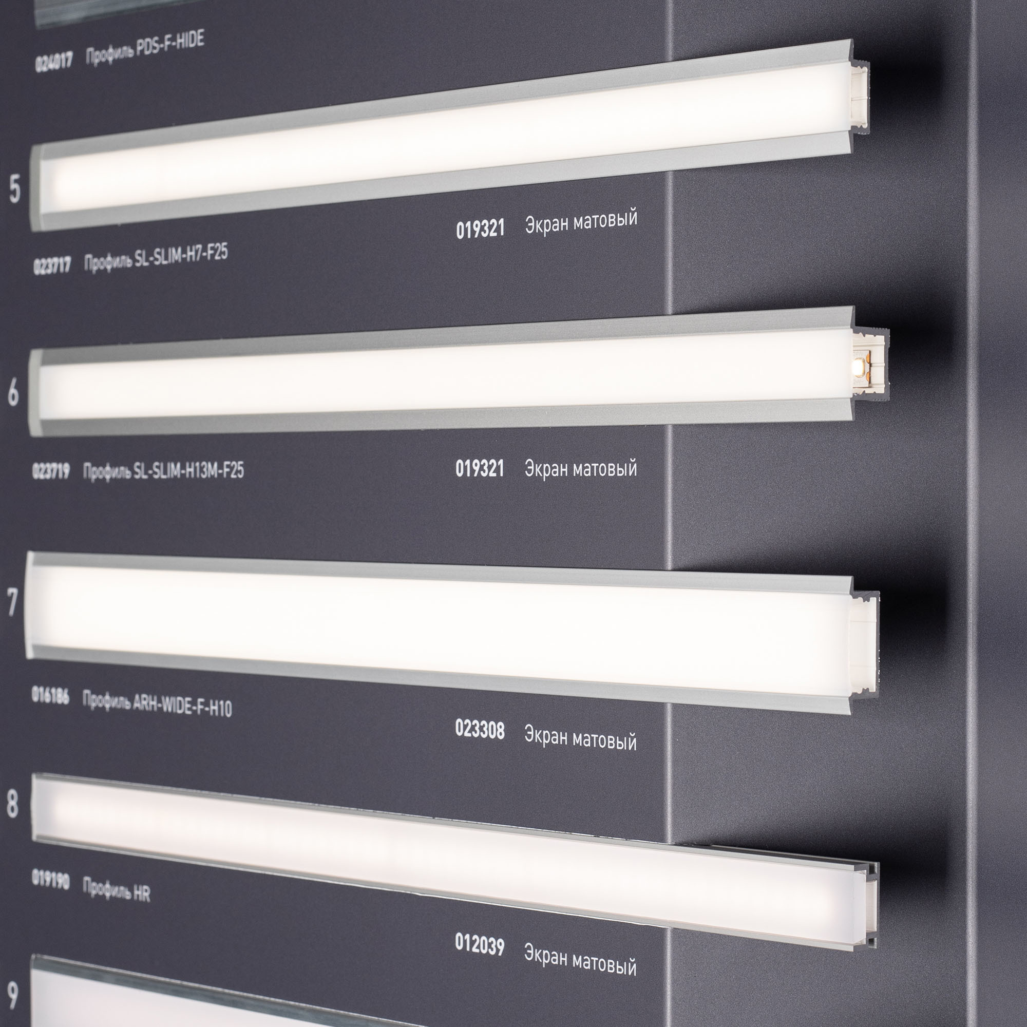 Стенд Алюминиевые Профили Встраиваемые со светодиодной лентой.