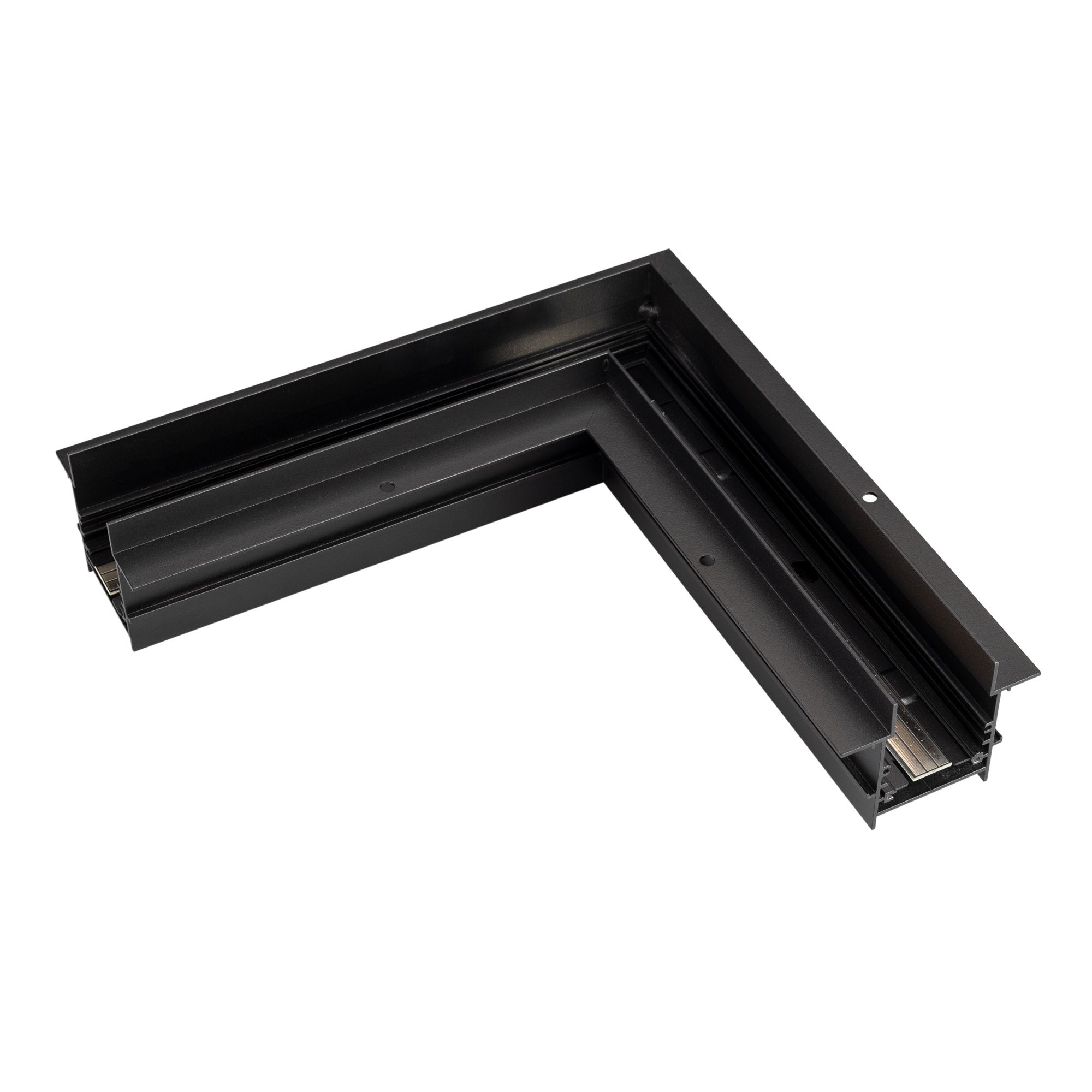 Угловой прямой коннектор для встраиваемого трека MAG-TRACK-4560-FDW. DC24V. Материал алюминий, цвет черный. Размеры 245x245x75x60мм. Аксессуары для соединения с треком приобретаются отдельно.