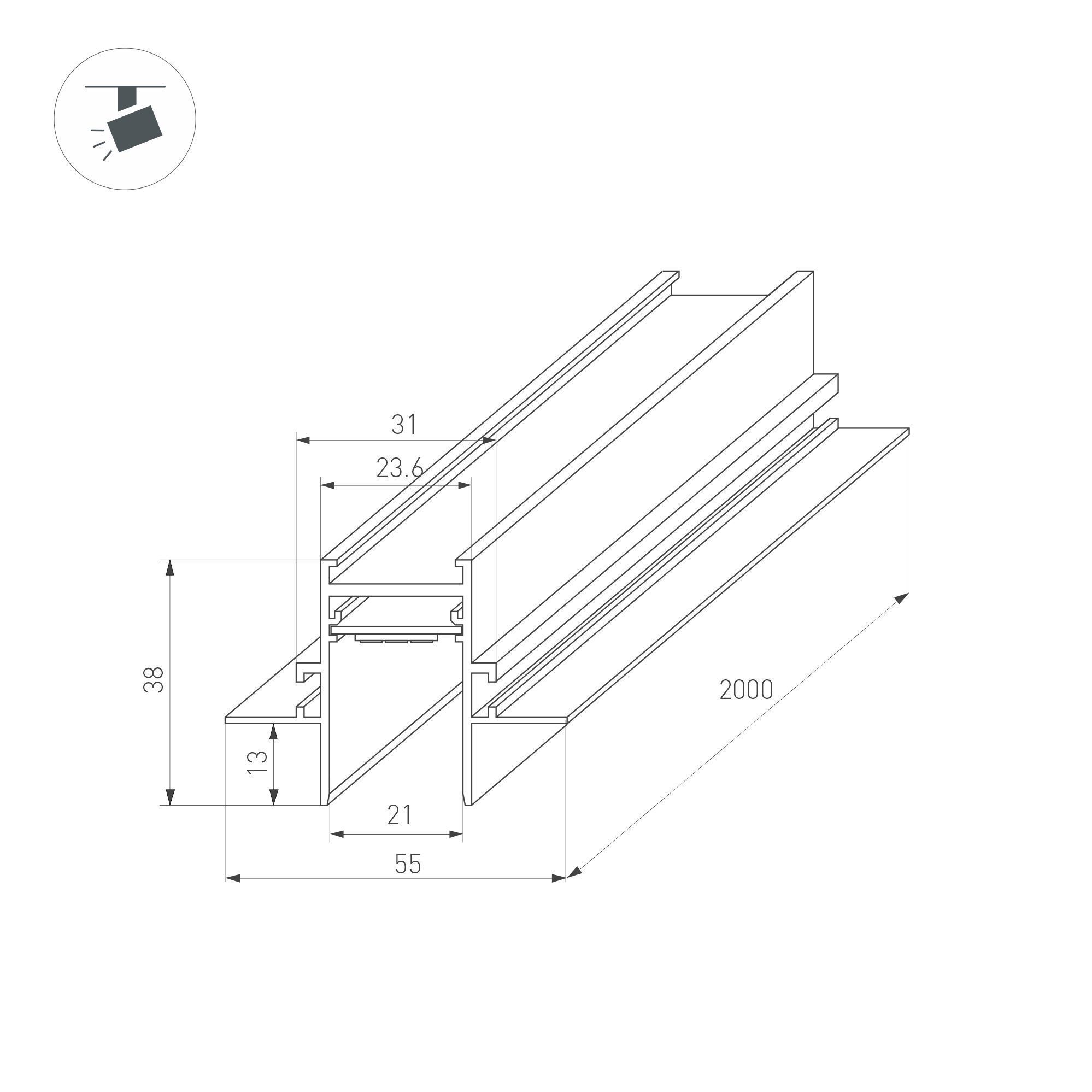 Характеристики - Трек встраиваемый MAG-TRACK-2538-FDW-2000 (BK) (Arlight, IP20 Металл, 5 лет)