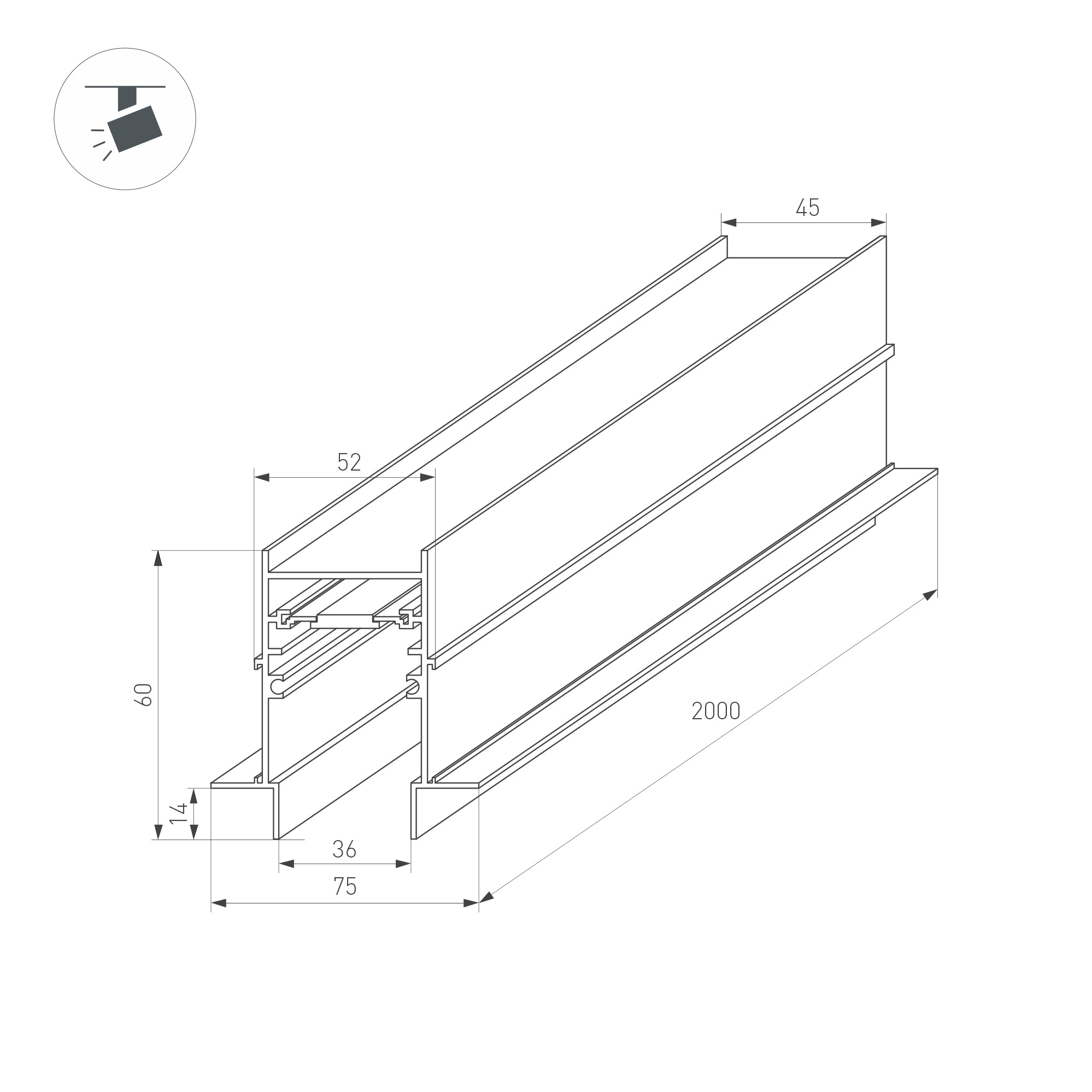 Характеристики - Трек встраиваемый MAG-TRACK-4560-FDW-2000 (BK) (Arlight, IP20 Металл, 5 лет)