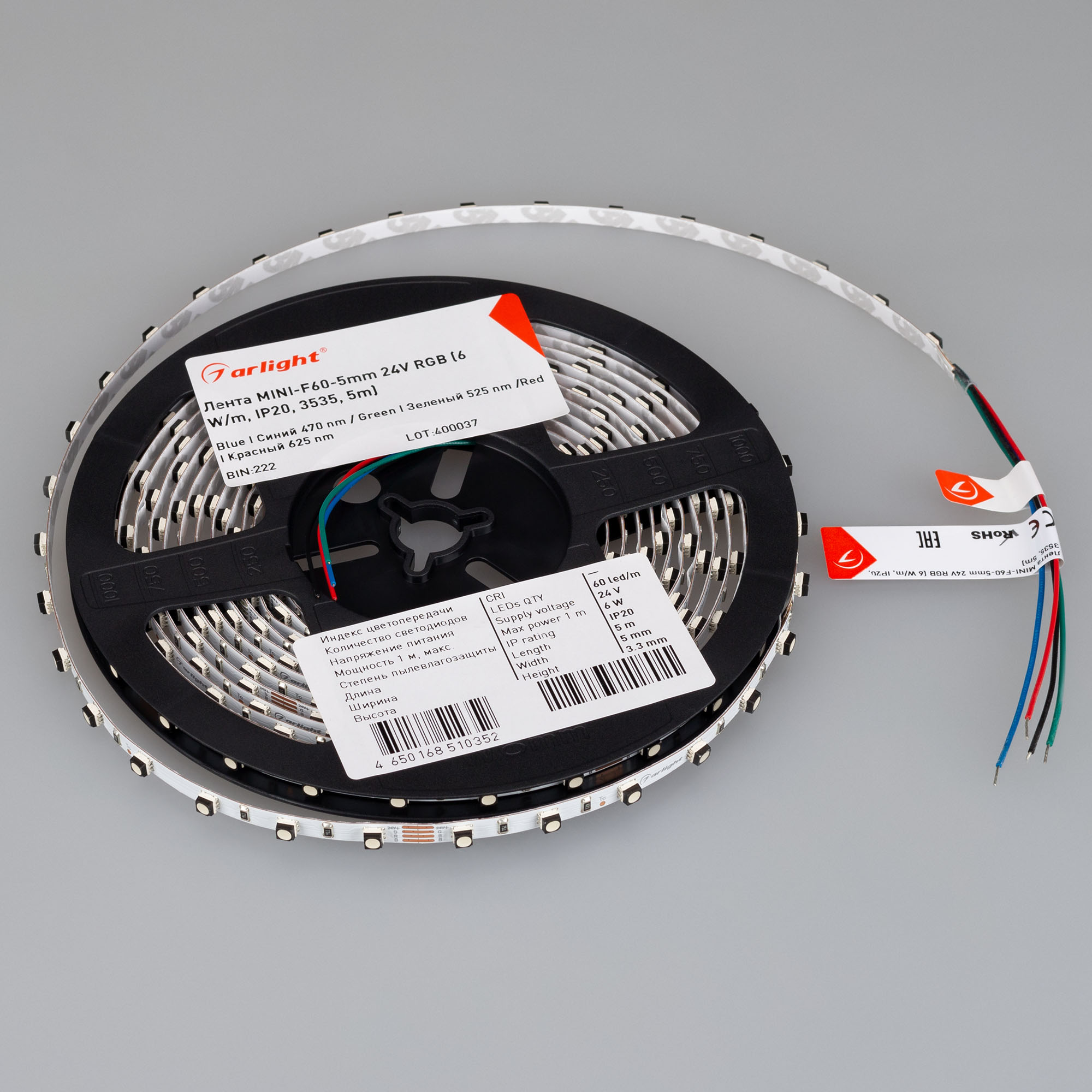 Характеристики - Лента MINI-F60-5mm 24V RGB (6 W/m, IP20, 3535, 5m) (Arlight, узкая)