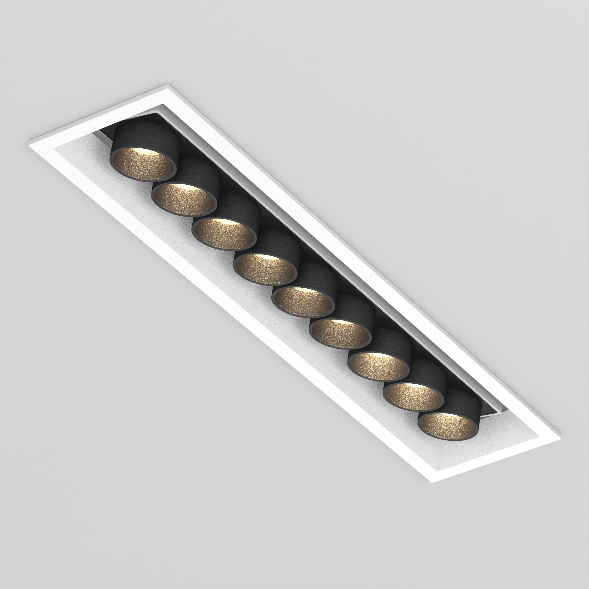 Встраиваемый поворотный светильник MS-ORIENT-BUILT-TURN-TC-S67x300-20W Warm3000 (WH-BK, 30 deg, 230V) мощностью 20 Вт с очень высоким индексом цветопередачи CRI>98 и теплым цветом свечения (3000 К) для максимально достоверного воспроизведения цветов и их оттенков. Предназначен для основного, локального и декоративного освещения жилых, офисных помещений, учебных заведений, чистых помещений и рабочих зон в медицинских учреждениях. Удобный механизм наклона светового модуля в диапазоне 25° позволяет регулировать направление света при создании акцентного освещения. У светильника узкий угол излучения 30°, световой поток 1500 лм и низкая пульсация <1%, что создает качественное, равномерное освещение без мерцаний. Светильник оснащен драйвером и встраивается в установочное отверстие Ø295×60 мм. Диммирование возможно при замене штатного драйвера.