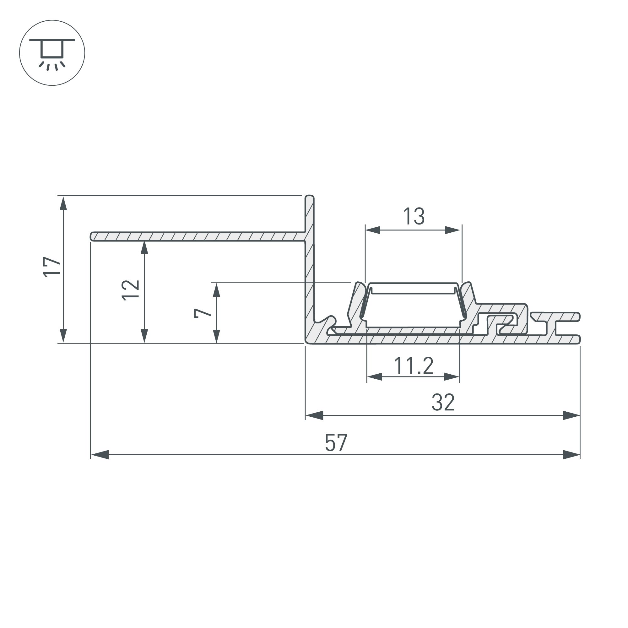 Двухкомпонентный накладной алюминиевый профиль для подсветки ниш и других элементов интерьера. Луч света направлен перпендикулярно плоскости потолка. "Тонкий край" под финишную отделку. Габаритные размеры профиля составляют 2000 мм в длину, 57 мм в ширину и 17 мм в высоту. Площадка для установки светодиодных лент позволяет использовать ленту шириной до 10 мм и мощностью до 12,3 Вт/м. Это обеспечивает гибкость в выборе светодиодных лент и создает потрясающие световые решения. Экраны, заглушки и другие аксессуары не включены в комплект и приобретаются отдельно. Цена указана за 1 метр профиля. Отличное решение для создания современных световых проектов.