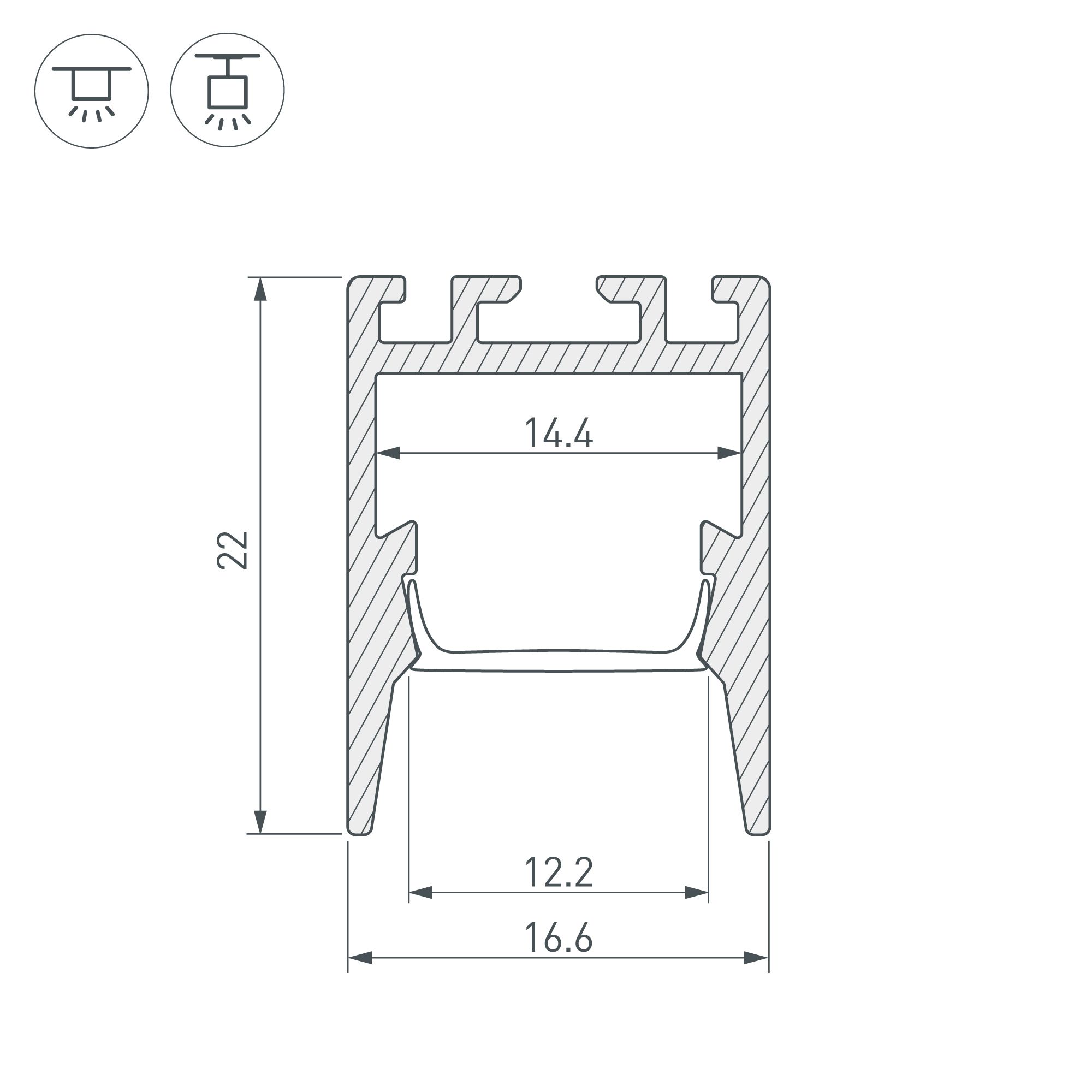 Подвесной/накладной профиль черного цвета из анодированного алюминия для основного освещения и контурной подсветки интерьера. Экран утоплен в плоскости профиля, что позволяет скрыть источник света от прямого контакта с глазами. Габаритные размеры профиля составляют 2000 мм в длину, 16,6 мм в ширину и 22 мм в высоту. Площадка для установки светодиодных лент позволяет использовать ленту шириной до 14,4 мм и мощностью до 20 Вт/м. Это обеспечивает гибкость в выборе светодиодных лент и создает потрясающие световые решения. Экраны, заглушки и другие аксессуары не включены в комплект и приобретаются отдельно. Цена указана за 1 метр профиля. Отличное решение для создания современных световых проектов.