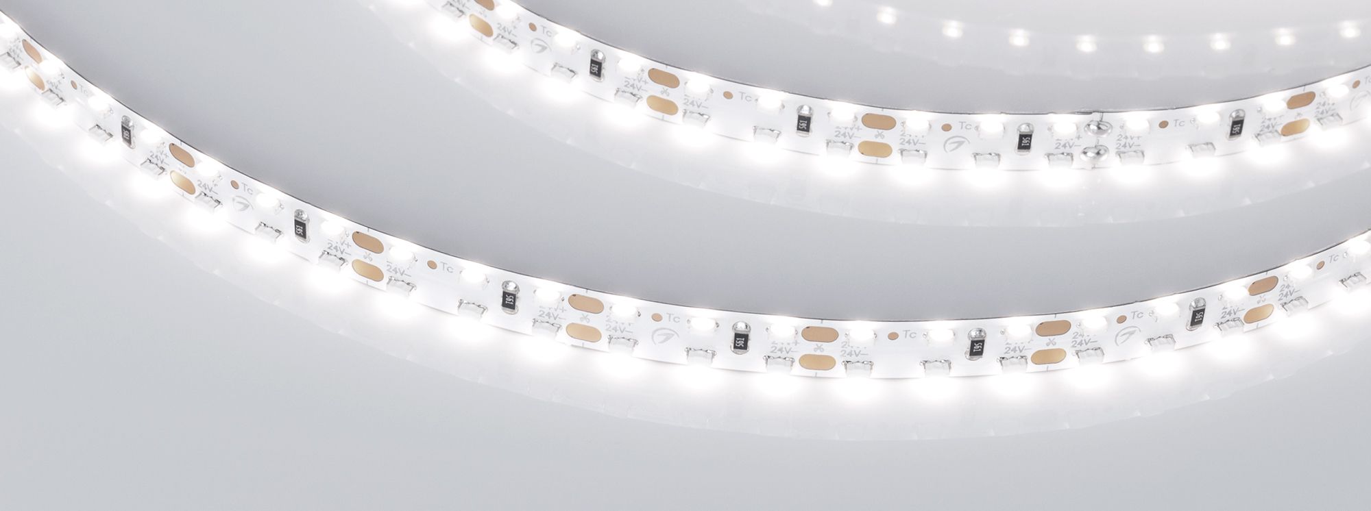 Двухрядная лента бокового свечения шириной 8 мм. Светодиоды SMD 3014 (240 шт/м) дневного белого цвета свечения (3900–4250 К) с индексом цветопередачи CRI>80. Светодиоды светят в плоскости ленты в обе стороны. Нестандартные решения для подсветки мебели, стеклянных полок, декора. Создает контурное свечение с двух сторон при установке на стенки рекламных знаков, букв. Мощность 14.4 Вт/м, напряжение питания 24 В. Минимальный отрезок 25 мм (6 светодиодов).
