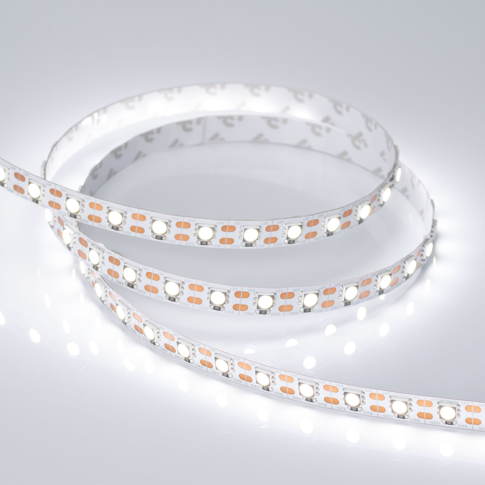 Светодиодная лента LUX шириной 10 мм с минимальным шагом резки 1 светодиод (13.89 мм) и очень высоким индексом цветопередачи (CRI>98). Светодиоды SMD 5060 (72 шт/м) дневного белого цвета свечения (4800–5200 К). Мощность 16.8 Вт/м, напряжение питания 12 В. Минимальный шаг резки позволяет отрезать любую нестандартную длину. Идеально подходит для подсветки рекламных конструкций и витрин, создания основного освещения и декоративной подсветки. Рекомендуется установка на профиль.