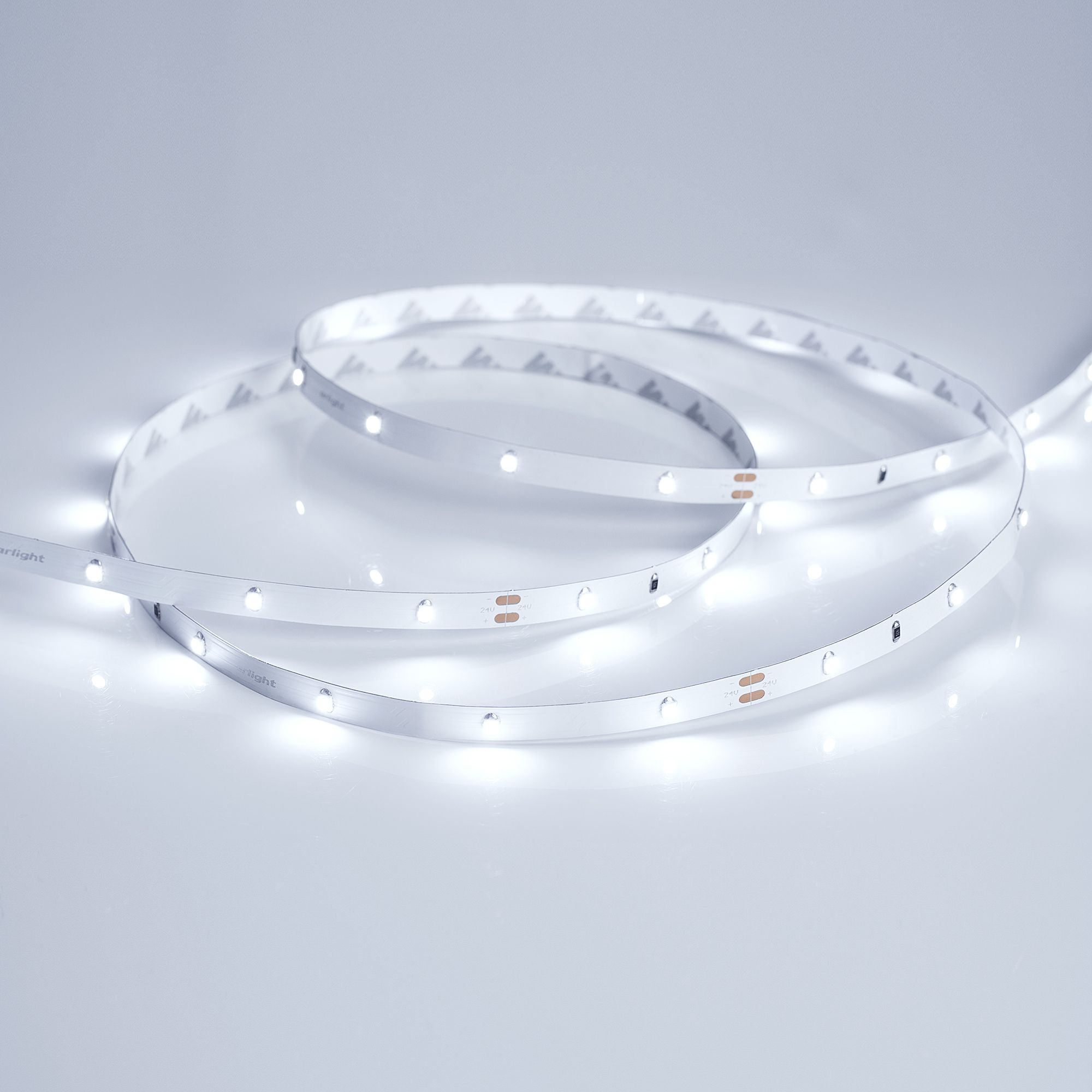 Лента серии LUX с низким энергопотреблением, питанием 24 В и мощностью 2.9 Вт/м для декоративной подсветки различных интерьеров. Светодиоды SMD 3528 холодного белого цвета свечения (7700 - 9600 К) с плотностью расстановки 30 шт/м. Индекс цветопередачи CRI>85 и степень пылевлагозащиты IP20. Универсальная лента для организации декоративной подсветки в помещениях: подсветка лестниц, ступеней, плинтусов, ниш, мебельных полок. Управление с помощью диммера для одноцветных лент. Установка на профиль необязательна.