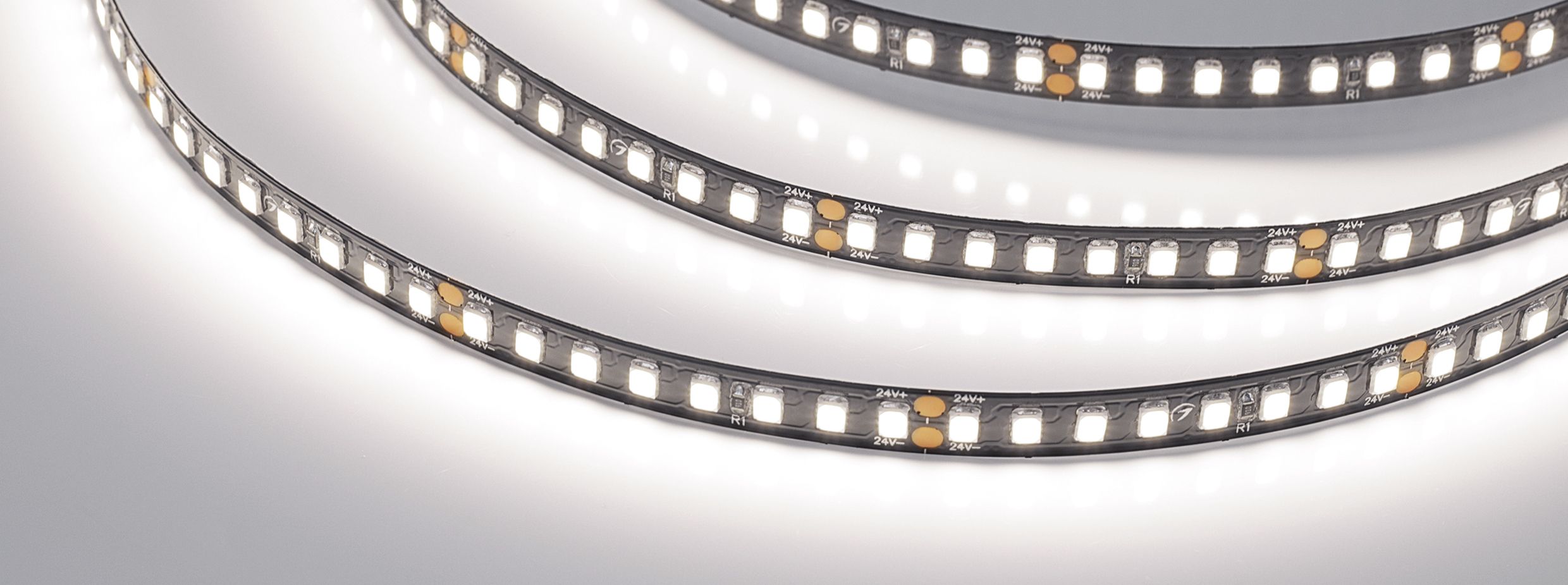 Светодиодная лента шириной 8 мм и мощностью 12 Вт/м. Светодиоды SMD 2835 (160 шт/м) дневного белого цвета свечения (3800–4200 К). Высокая световая эффективность 150 лм/Вт. Напряжение питания 24 В. Минимальный отрезок 50 мм (8 светодиодов). Для основного и декоративного освещения, подсветки рекламных конструкций и витрин.