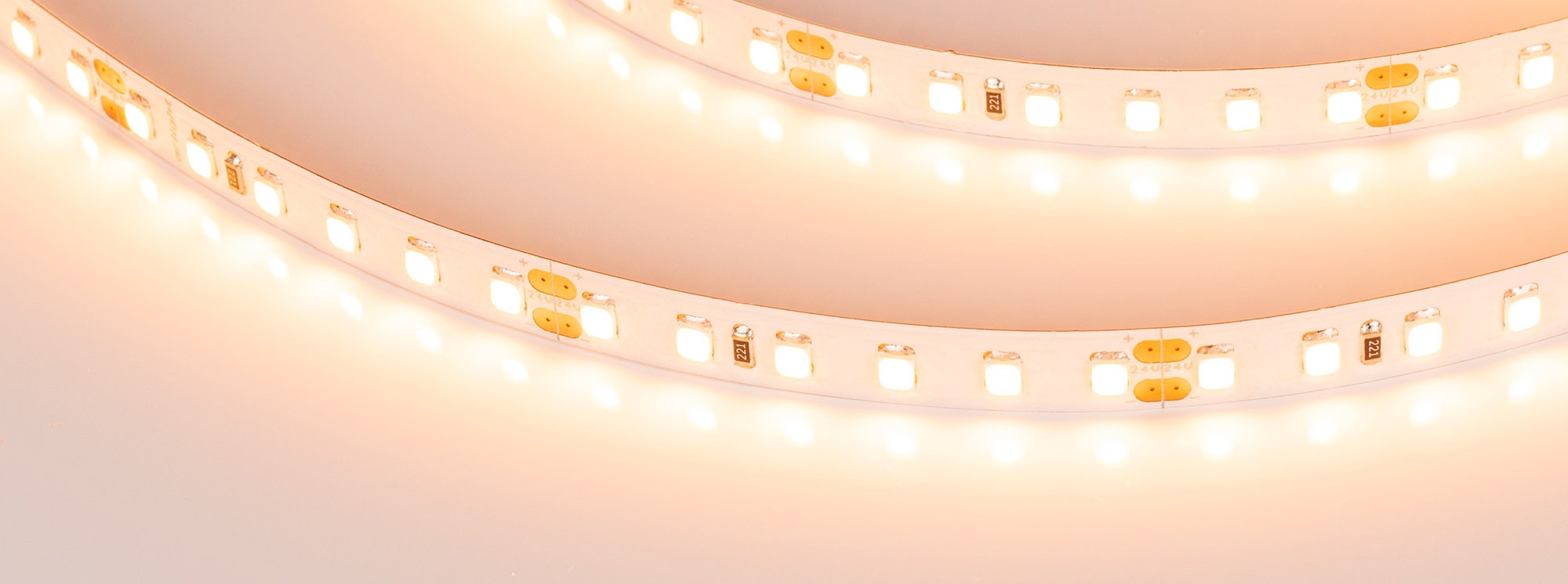 Универсальная светодиодная лента RT серии A120 шириной 8 мм, мощностью 14.4 Вт/м. Напряжение питания 24 В. Светодиоды SMD 2538, 120 шт/м, теплого цвета свечения (2400K). Индекс цветопередачи CRI>85. Минимальный отрезок 50 мм (6 светодиодов). Универсальное применение для организации декоративной подсветки любых жилых и коммерческих помещений, подсветки интерьеров, потолочных ниш, лестниц, ступеней, полок, натяжных потолков, витражей. Обязательна установка на профиль.