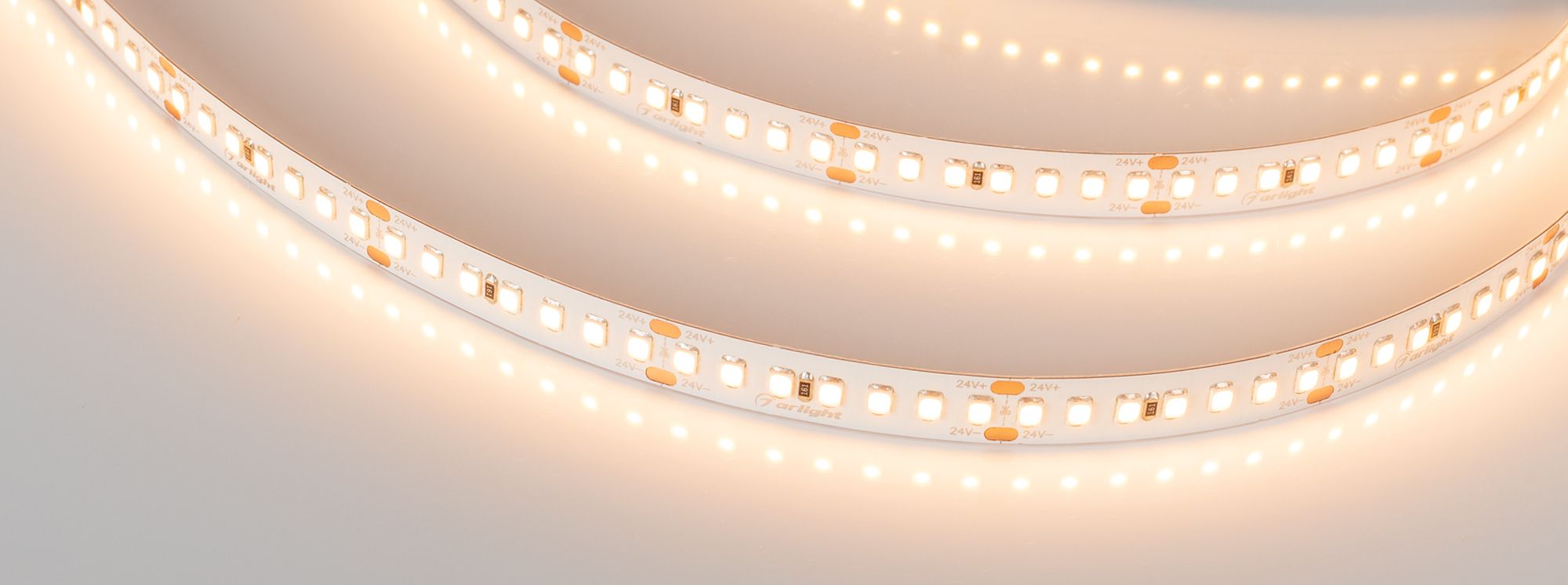 Светодиодная лента RT серии A168 шириной 10 мм, мощностью 17 Вт/м, с высоким индексом цветопередачи 95...98, близким к естественному свету. Напряжение питания 24 В. Светодиоды SMD 2835, 168 шт/м, теплого цвета свечения (2700K). Минимальный отрезок 41.67 мм (7 светодиодов). Применяется в помещениях с высокими требованиями к качеству освещения: музеи и выставочные залы, картинные галереи, торговые помещения и витрины, ответственные участки производства, детские комнаты и другие объекты, где требуется освещение, максимально точно передающее естественные цвета и оттенки предметов.