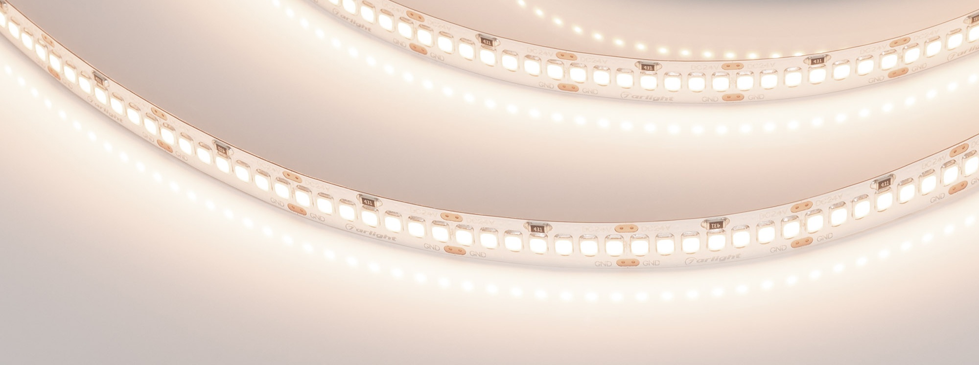 Светодиодная Лента RT-A252-10mm 24V Warm3500 (11 W/m, IP20, 2835, 5m) (Arlight, Открытый)