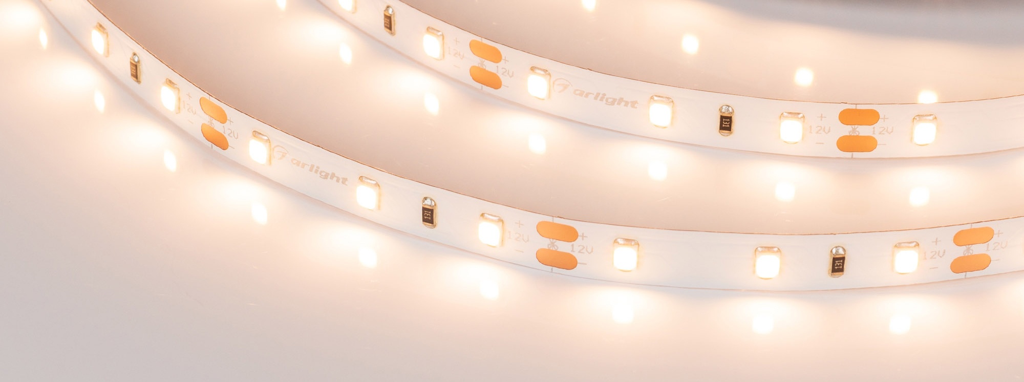Универсальная светодиодная лента RT серии A60 шириной 8 мм, мощностью 4.8 Вт/м. Напряжение питания 12 В. Светодиоды SMD 2835, 60 шт/м, теплого цвета свечения (3000K). Индекс цветопередачи CRI>85. Минимальный отрезок 50 мм (3 светодиода). Универсальное применение для организации декоративной подсветки любых жилых и коммерческих помещений, подсветки интерьеров, потолочных ниш, лестниц, ступеней, полок, натяжных потолков, витражей, рекламных конструкций.