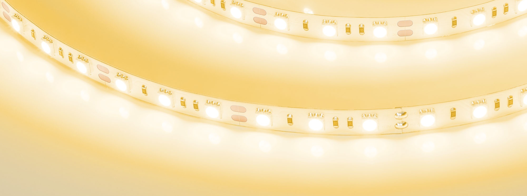 Светодиодная лента RT серии B60 шириной 10 мм, мощностью 14.4 Вт/м. Светодиоды SMD 5060, 60 шт/м, желтого цвета свечения. Напряжение питания 12 В. Минимальный отрезок 50 мм (3 светодиода). Широкий шаг между светодиодами обеспечивает эффект видимых световых точек. Применяется для декоративной подсветки интерьеров, рабочих зон кухни, рекламных конструкций и витрин. Обязательна установка на алюминиевый профиль.