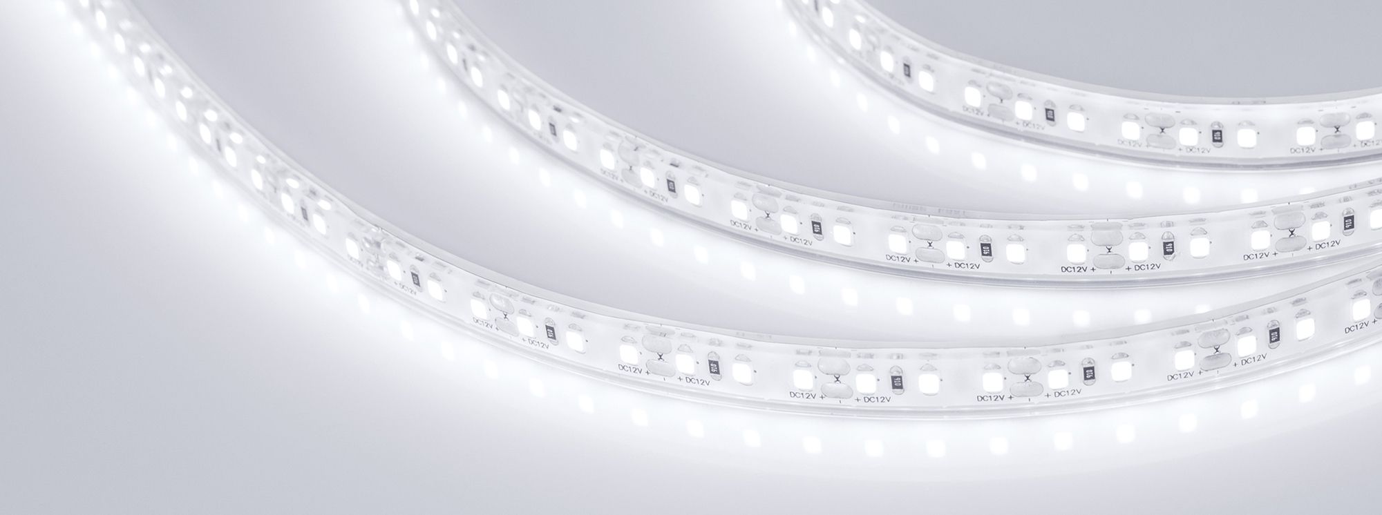 Герметичная светодиодная лента RTW серии A120 в полиуретановой оболочке с высокой степенью пылевлагозащиты IP68 для использования под водой на глубине до 2 м. Светодиоды SMD 2835, 120 шт/м, белого цвета свечения (6000K) с высоким индексом цветопередачи CRI>90. Мощность 16.8 Вт/м, напряжение питания 12 В. Минимальный отрезок 25 мм (3 светодиода). Предназначена для постоянного погружения и использования в агрессивной водной среде (плавательные бассейны, фонтаны, искусственные водоемы). Подходит для использования на открытом воздухе. Герметичная оболочка устойчива к УФ-излучению, перегреву, помутнению и рассыханию. Лента крепится с помощью силиконовых скоб, скобы идут в комплекте (5 шт), 3M скотч отсутствует.