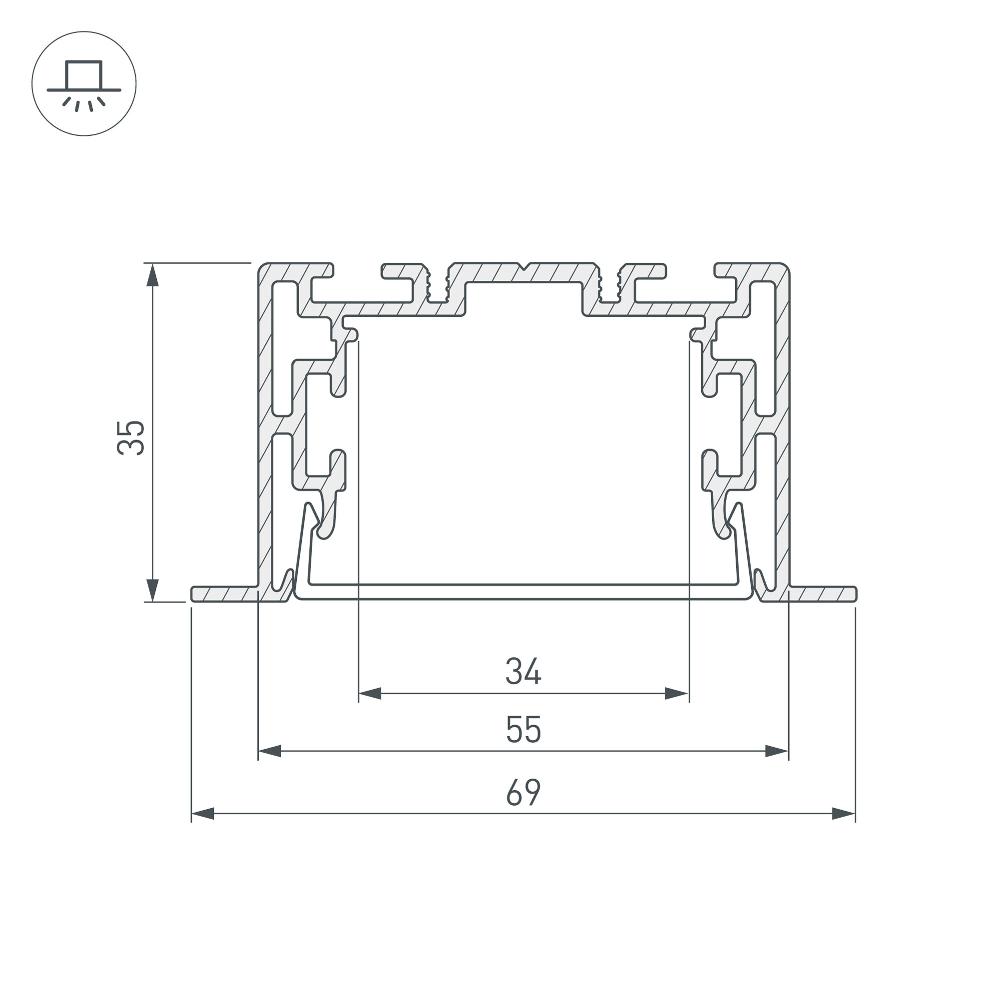 Характеристики - Профиль с экраном S2-LINIA69-F-2500 ANOD+OPAL (Arlight, Алюминий)
