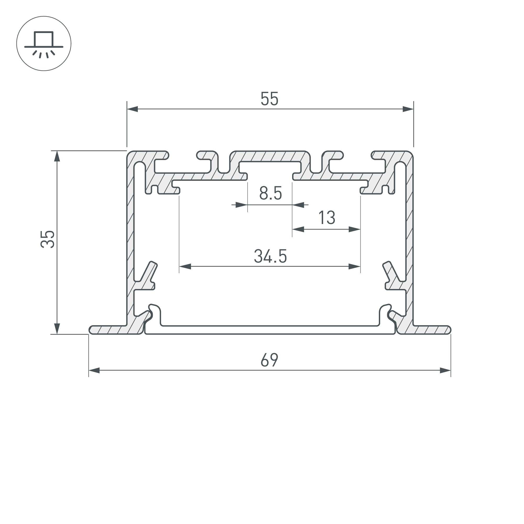 Характеристики - Профиль S2-LINIA69-F-2500 SEAMLESS BLACK (Arlight, Алюминий)