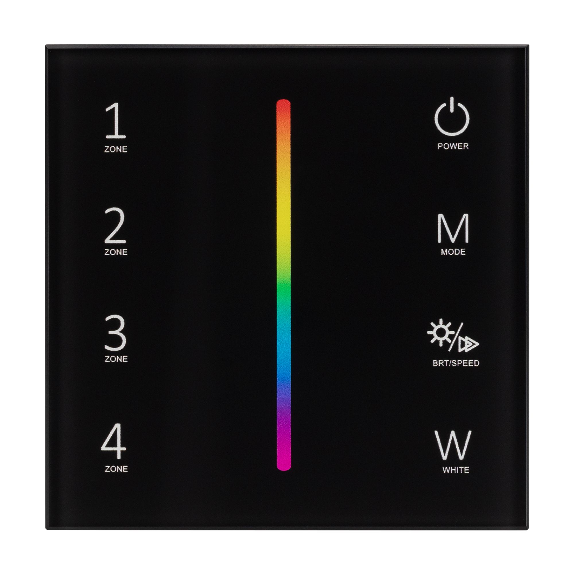Характеристики - Панель Sens SMART-P30-RGBW Black (230V, 4 зоны, 2.4G) (Arlight, IP20 Пластик, 5 лет)