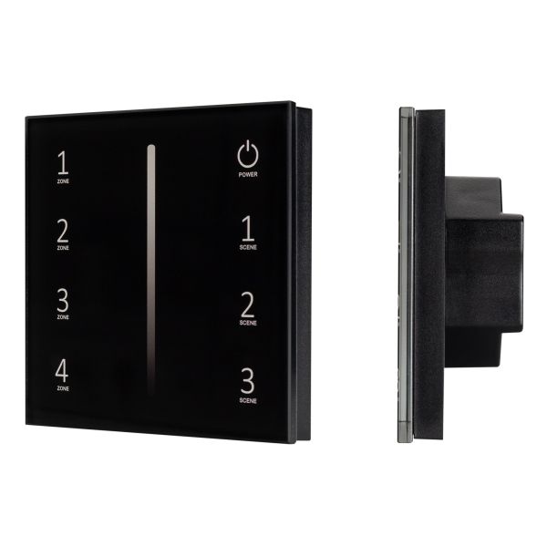 Встраиваемая сенсорная панель выполнена в благородном черном цвете и изготовлена из высококачественного стекла, устойчивого к появлению мелких царапин и сколов, что обеспечивает надежность и долговечность использования. Она обладает выходным сигналом 0/1-10V, что позволяет регулировать яркость освещения с помощью сенсорной полосы. При помощи панели можно управлять освещением в четырех зонах. Напряжение питания 230V. Габаритные размеры панели составляют 86х86х35 мм, что делает ее компактной и удобной в использовании. Панель совместима с 0/1-10V диммерами.