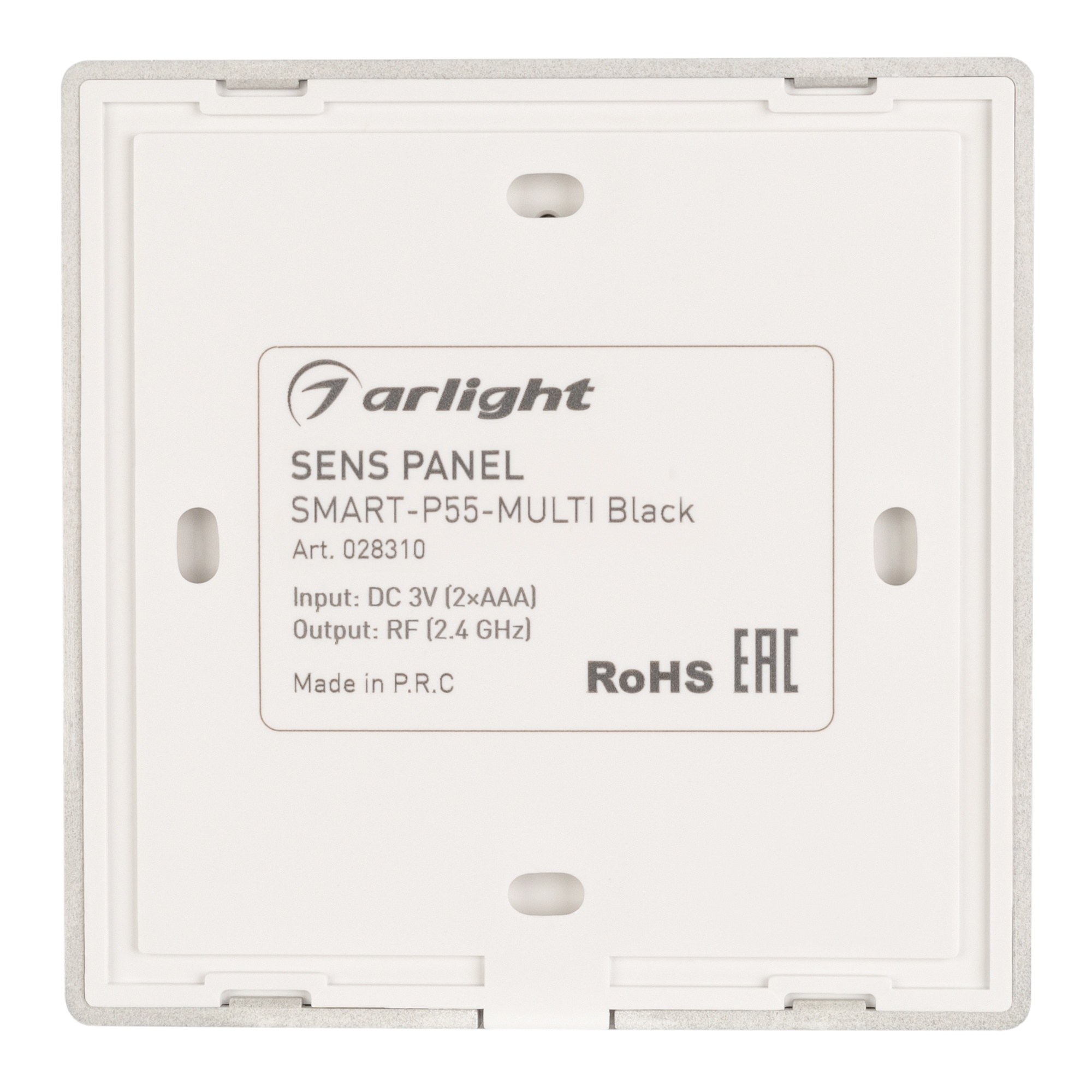Характеристики - Панель Sens SMART-P55-MULTI Black (3V, 4 зоны, 2.4G) (Arlight, IP20 Пластик, 5 лет)