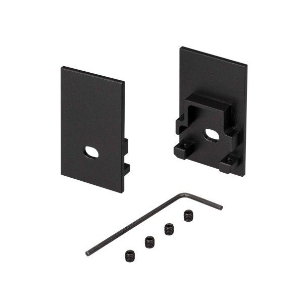 Металлические заглушки черного цвета (2 шт.) с отверстием для профиля SL-COMFORT-2542. Придают законченный вид светильнику, а также защищают светодиодную ленту от внешних факторов (грязи, пыли и прочего). Отверстие в заглушке позволяет вывести кабель питания светодиодной ленты.
